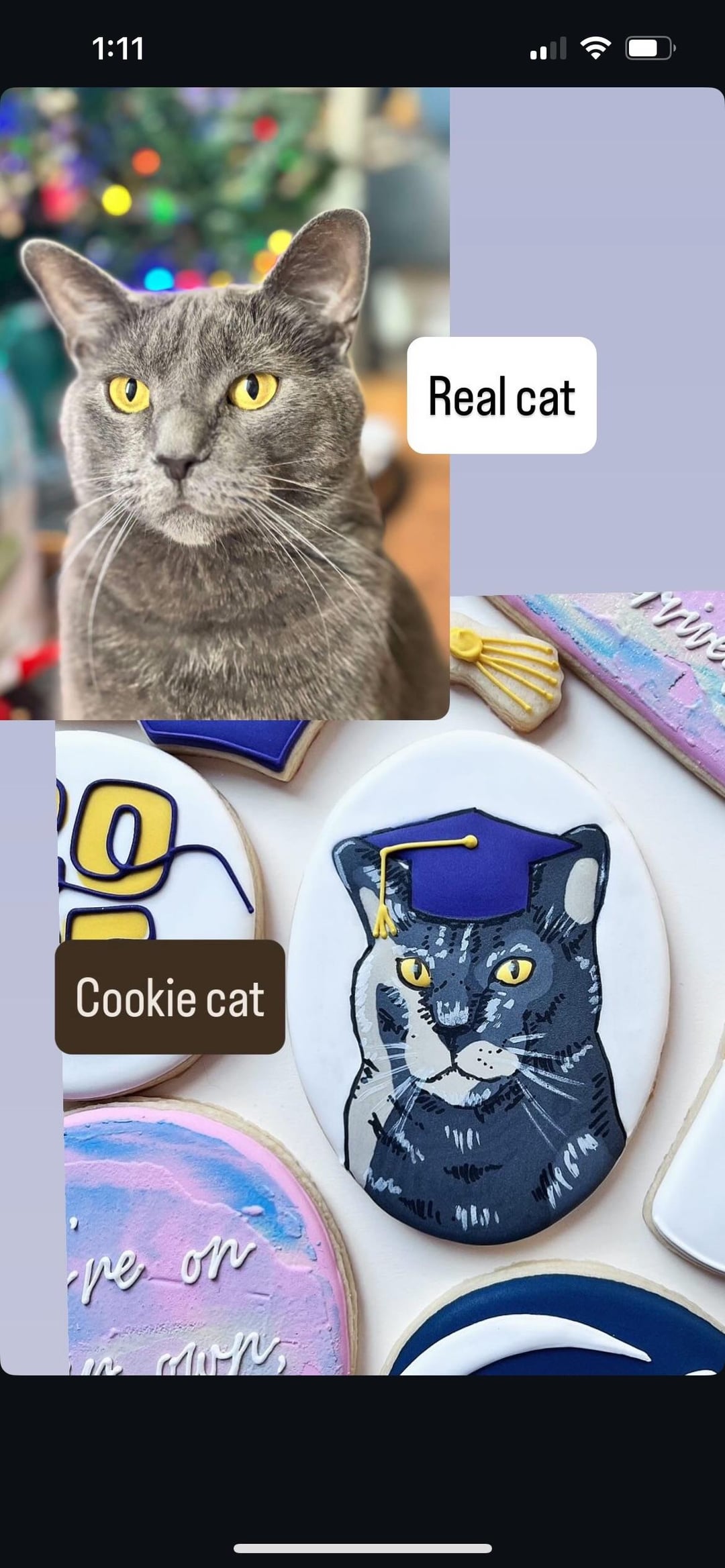 I made cookies for a graduation party and was asked to make some featuring his 2 cats wearing grad caps! Absolutely adorable kitties! by jjjkmm 1 Comment gillyflower17 4 months ago I’m obsessed with your portraiture and also the TS inspired quotes!!! Amazing work!!Write A CommentYou must be logged in to post a comment.