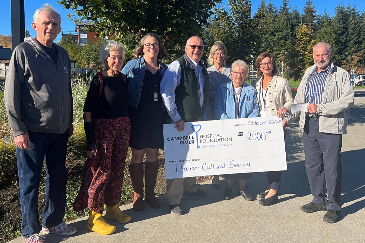The Campbell River Italian Cultural Society visited Campbell River Hospital with a cheque that will support the purchase of a Pulse Oximeter for the Respiratory Therapy Department.