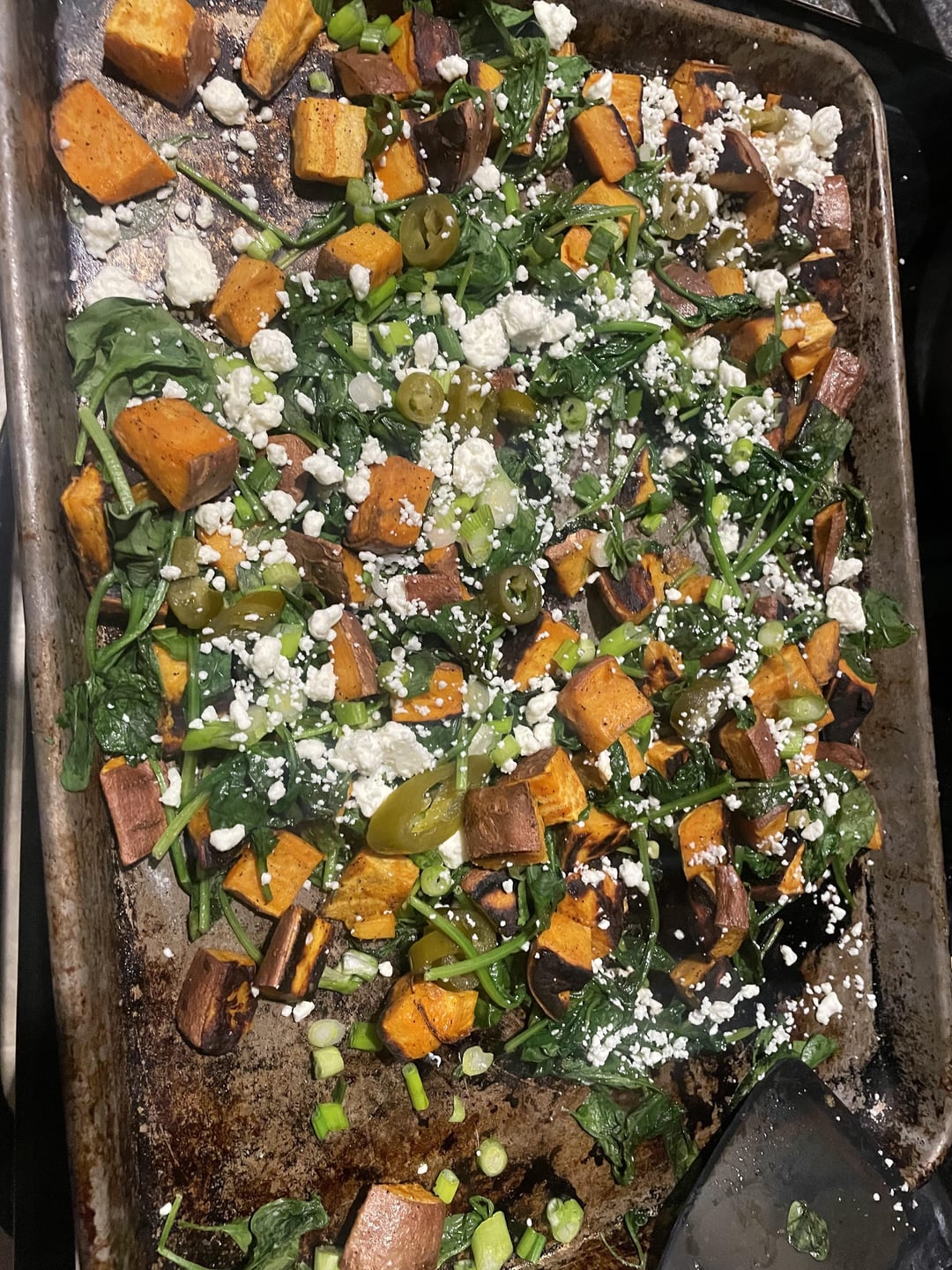 mgfreema 8 months ago Recipe:https://cooking.nytimes.com/recipes/1023553-roasted-sweet-potatoes-and-spinach-with-feta?smid=ck-recipe-iOS-share
