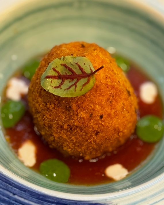 Raw tuna plus fried mozzarella is an atypical combination here, probably because it goes against the widespread (and often debunked) adage that cheese and fish don’t belong together in Italian cooking. (See: San Sabino’s shrimp Parm, or Marea’s lobster-and-burrata salad.) “I think that the whole story started because clam spaghetti was the most famous Italian dish in the U.S. and people were asking for Parmesan on it,” Cozzolino muses. “I would never put parmigiano on pasta with clams. Never.” But there’s no hard-and-fast rule back home, where you find mussels with pecorino in Puglia and burrata with anchovies in Campania. “I think mozzarella works perfectly with seafood in Italy,” he says.