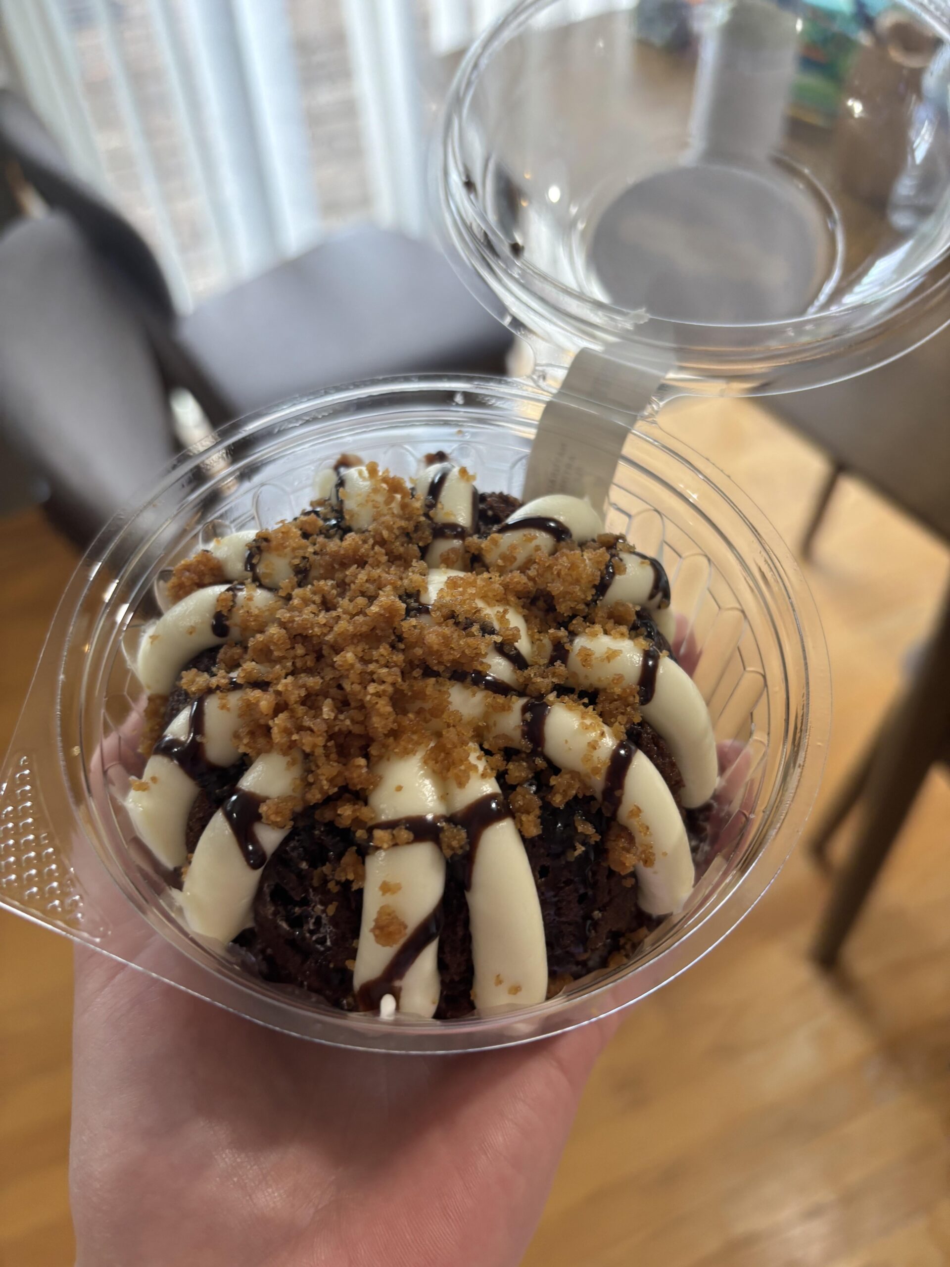 Chocolate paleta then covered in marshmallow cream that was toasted, then drizzled with chocolate, and then graham cracker crumb on top. Absolutely heavenly.