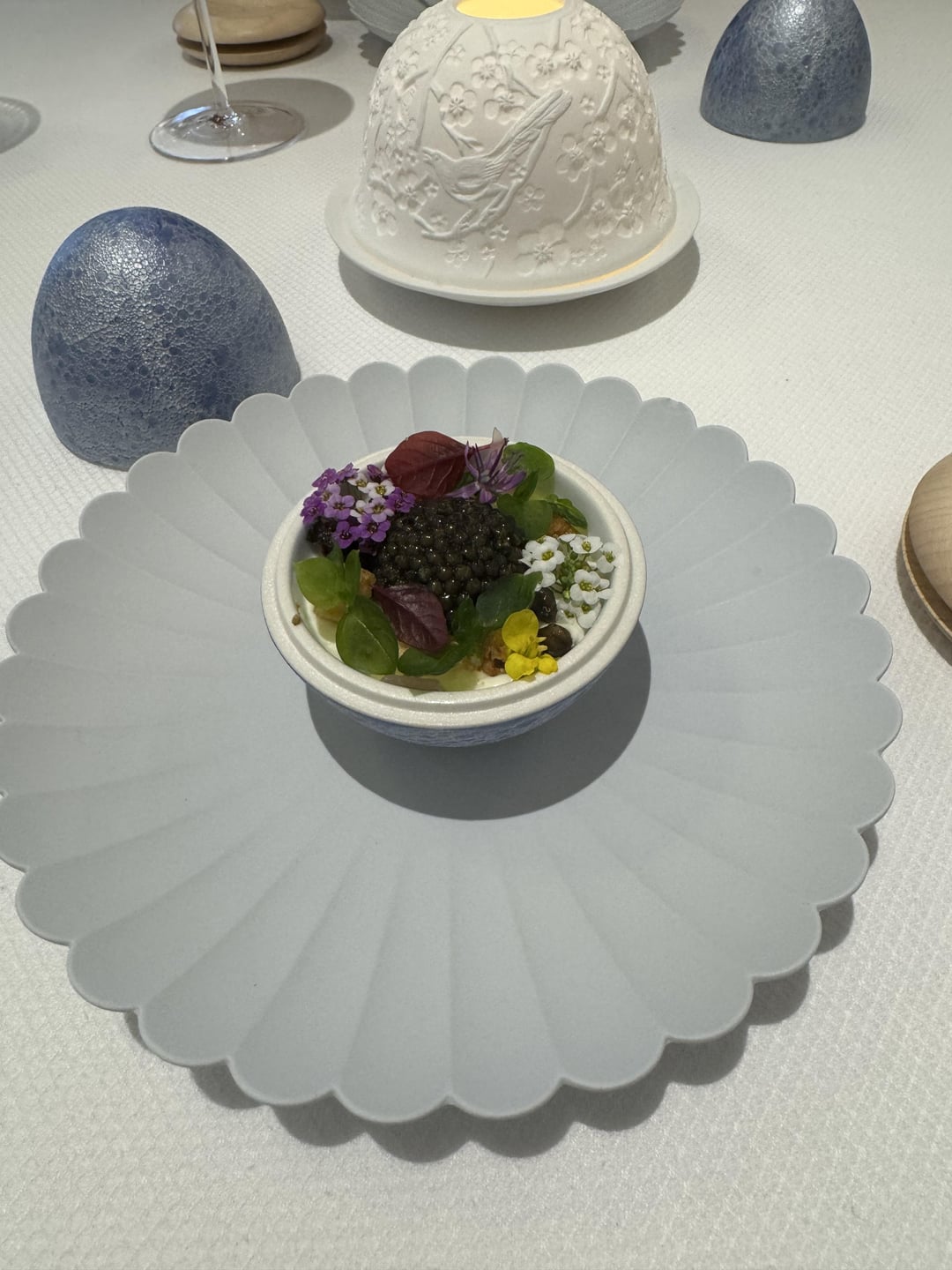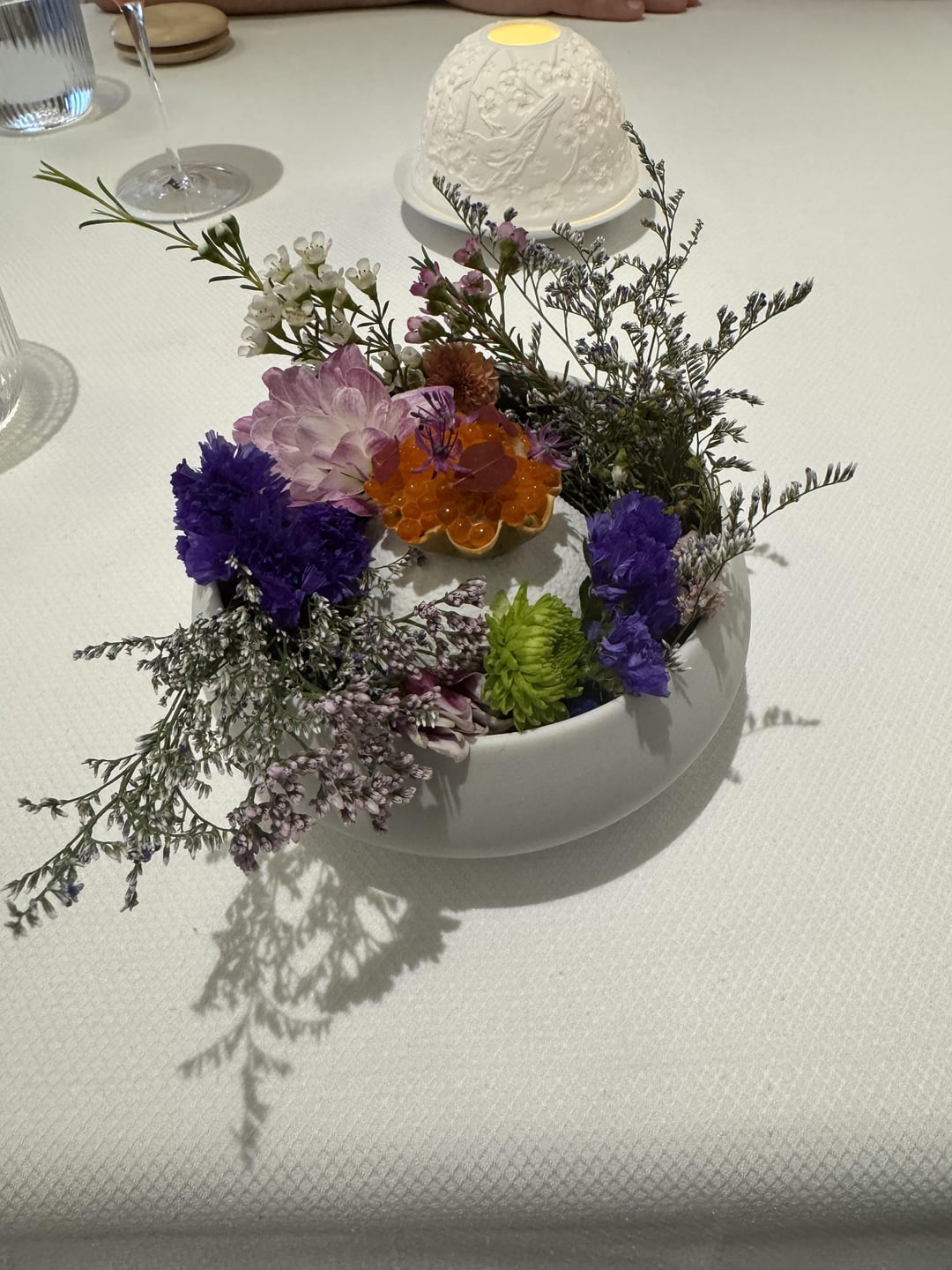 Course 2 the trout roe popped and I'm a sucker for edible flowers.