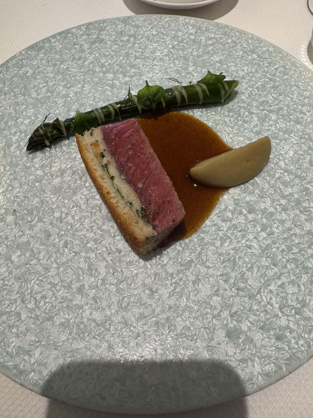 Course 9 a lamb Wellington with a wonderful asparagus.