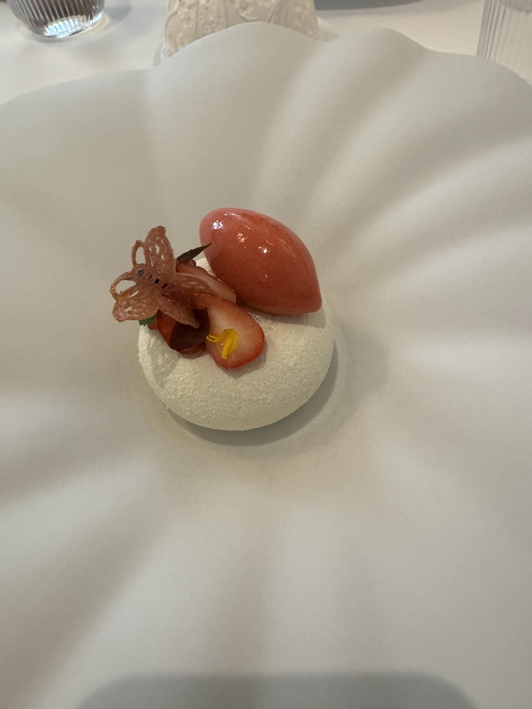 Course 11 Strawberries on strawberries with a white chocolate shell that was deceivingly thick