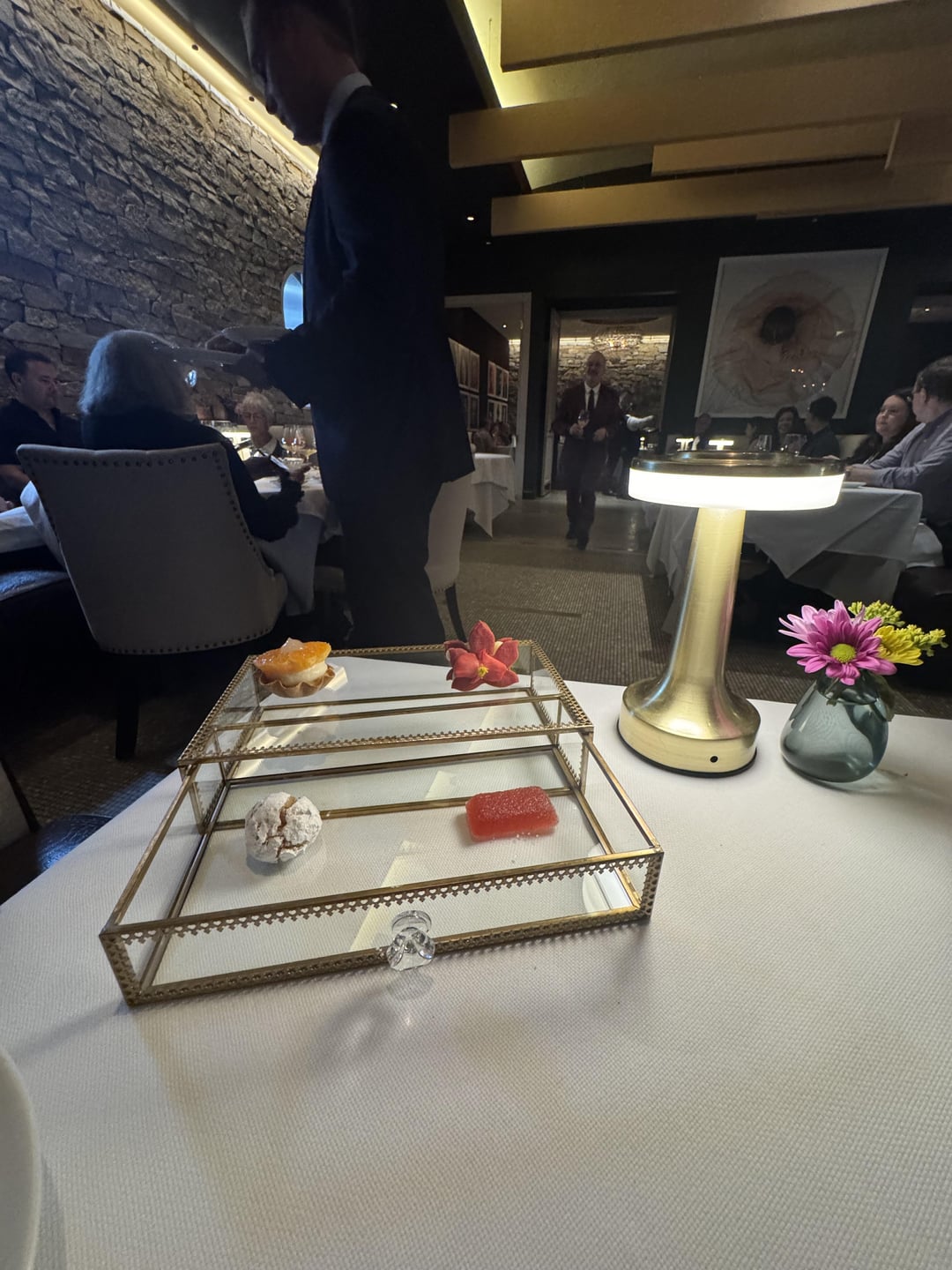 Overall I was extremely satisfied and felt the quality of the food and presentation was on 2+ stars level. The service was definitely one star as I could feel the sense of urgency in people walking around and certain things like scraping the table between meals did not occur. Just being particular as we all do pay a fine dollar for these experiences.