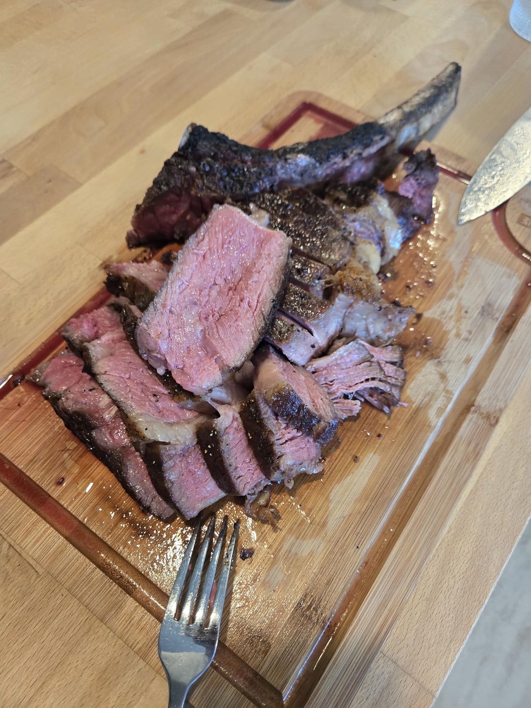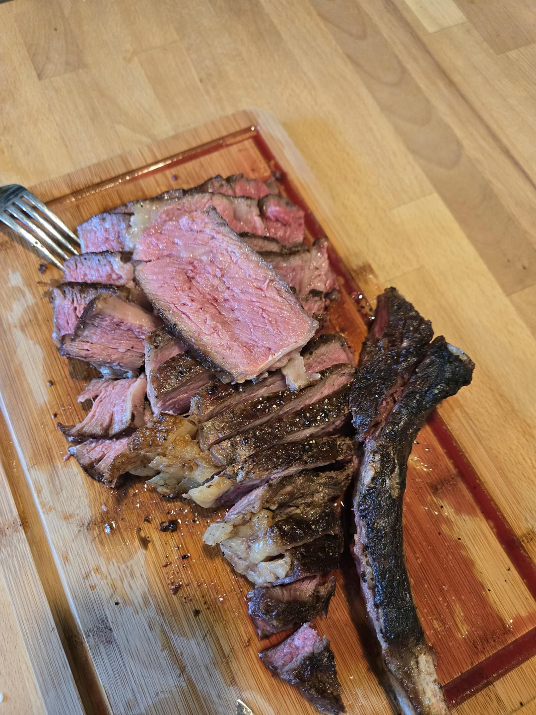 Looks great if you make another one, I would cut the spinalis off and serve it separately that tends to cook up to a more well done texture, but still very juicy and delicious for different reasons than the centre eye, which will be much more medium rare