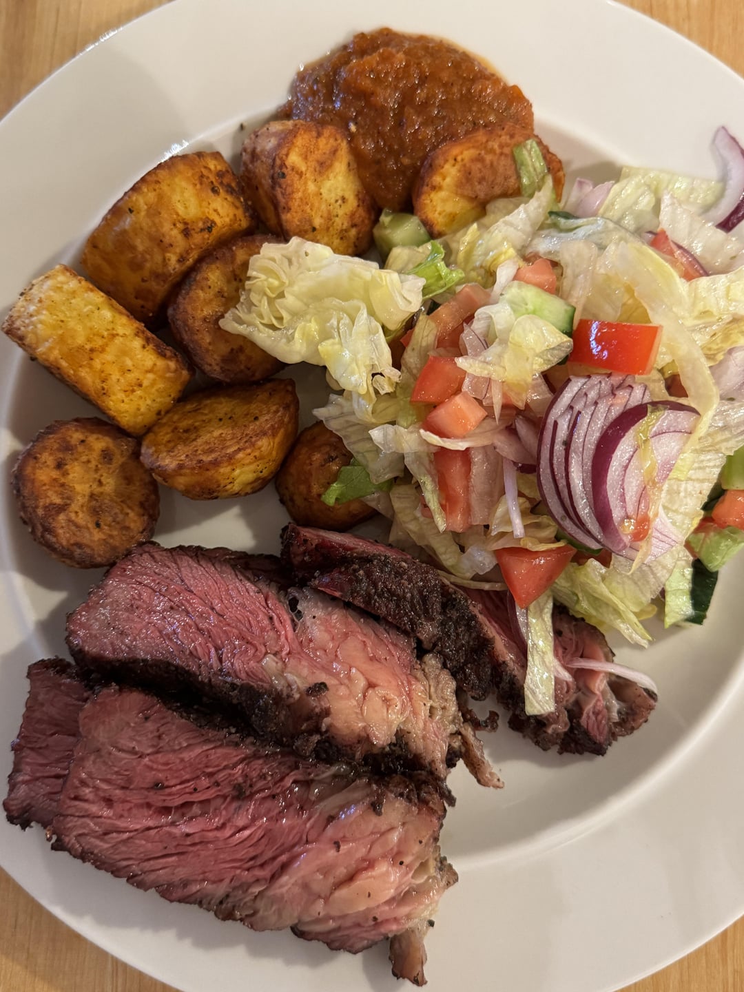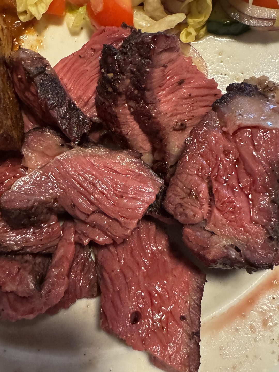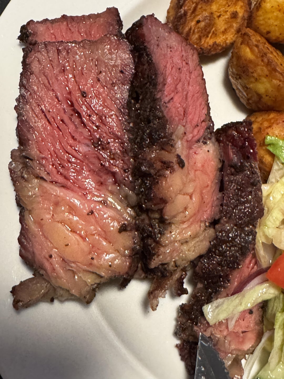 Looks great but I think that is one of the cuts of meat that does best when cooked long and slow, at low temp and probably best around med. But again it looks delicious. 👌🏻👍🏻