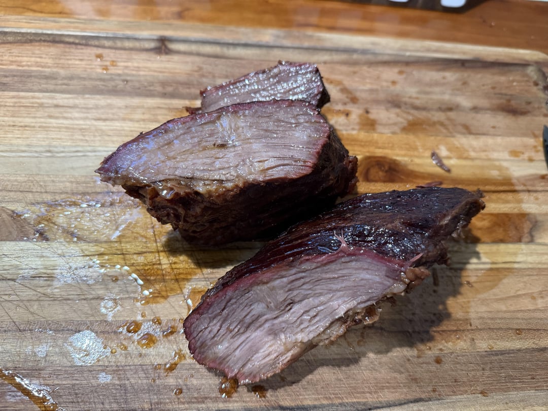 Marinade Tri tip for 48 hours(Hawaiian style), started at 190 for the first 3 hours with a smoke tube. Once it hit 145 internal, turned up heat 225 and sprayed “chili peppah watah” (vinegar base) every 15mins. Hit 165 internal then wrapped with foil and turned up heat 255. Removed at 202 and rest for about 2 hours. Total cook time was 8 hours. First time cooking a marinaded Tri tip like a brisket. Thoughts?