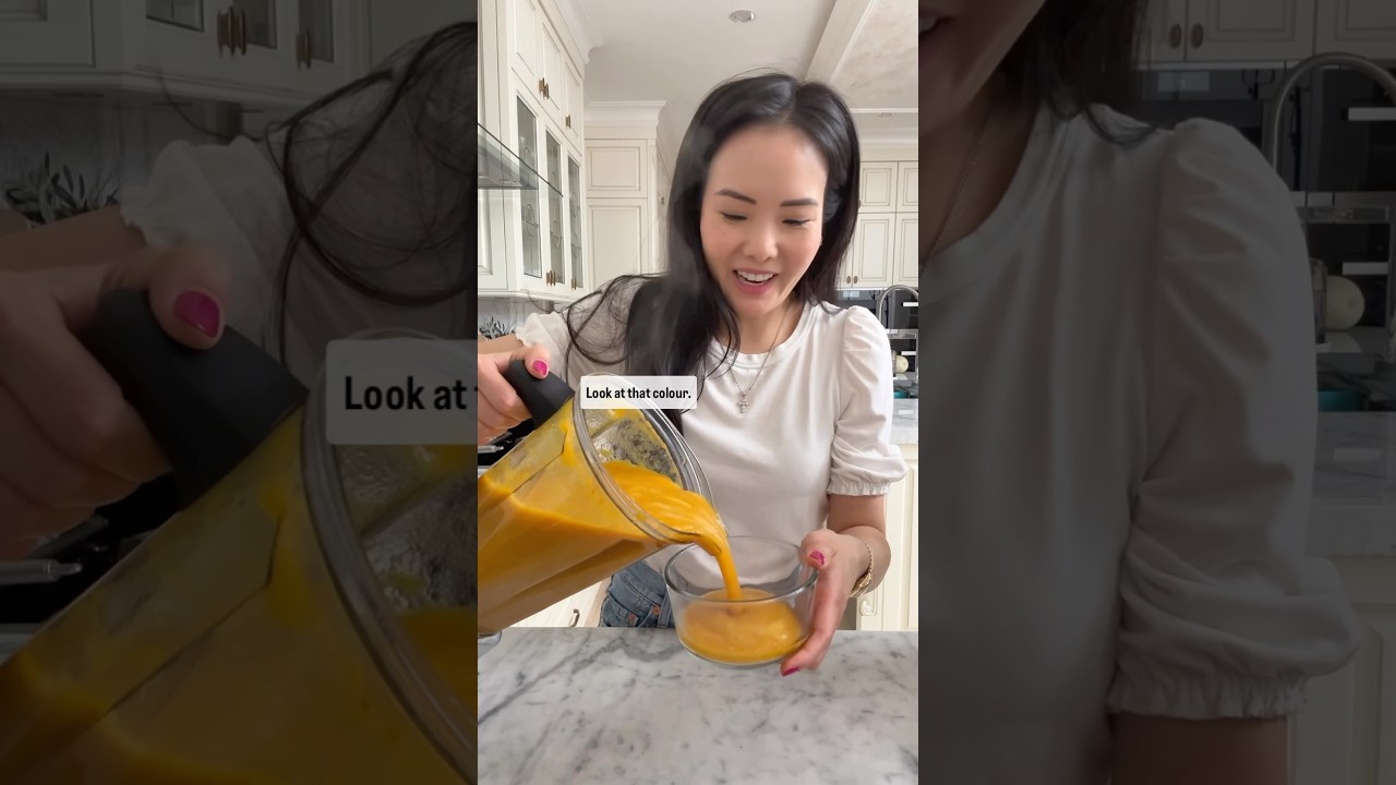 mommy what are we going to do with the Halloween decorations well this is a butternut squash we can eat this oh no but we need to cook it first we’re going to season it with some olive oil salt pepper bake it in the oven for an hour at 400Β° look at that see how it peels right off we’re just going to remove the seeds add it to our stock pot some celery carrots and an onion can I peel it um I think maybe we’ll leave the to me add a box of chicken stock and let it simmer for about 20 minutes here it is oo we’re going to blend everything together look at that color going to add a little bit of cream to make it smooth I made this garlic bread that you can use to dip into the soup M the perfect meal for a cold day what do you think I agree garlic bread is the best