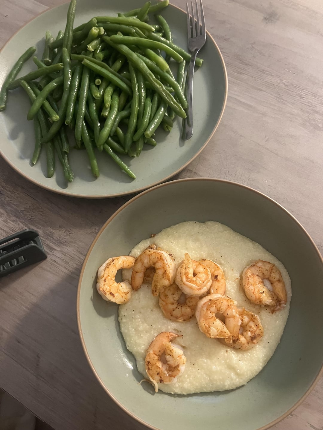 Shrimp, grits & green beans