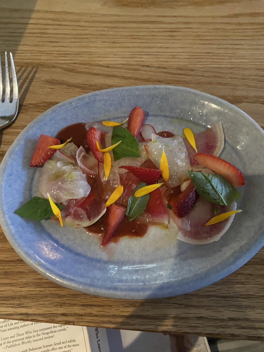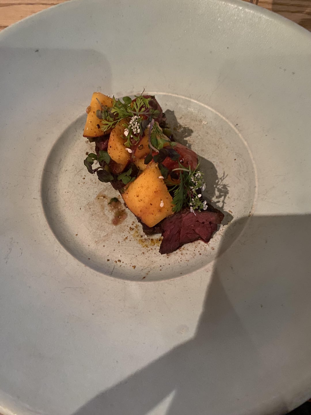 Standouts for me were the porcini doughnut, the uni cacio e pepe, the hangar steak with peaches, and the shrimp crudo with strawberries that took me back to the time I lived in Playa del Carmen.