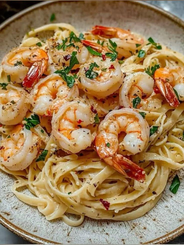 Say could you make me restaurant-grade shrimp scampi linguini and then fuss it with finely chopped herbs and then pull dishware from our food styling photography studio located right next to the kitchen and then turn on the special photo studio lighting and then take a picture of it with a DSLR camera and then give me the SD card so that I may take the photo and then lightly edit it in Lightroom and then I can go add it to a subreddit whereupon I will dump this very authentic photo—but then describe literally nothing about the dish?