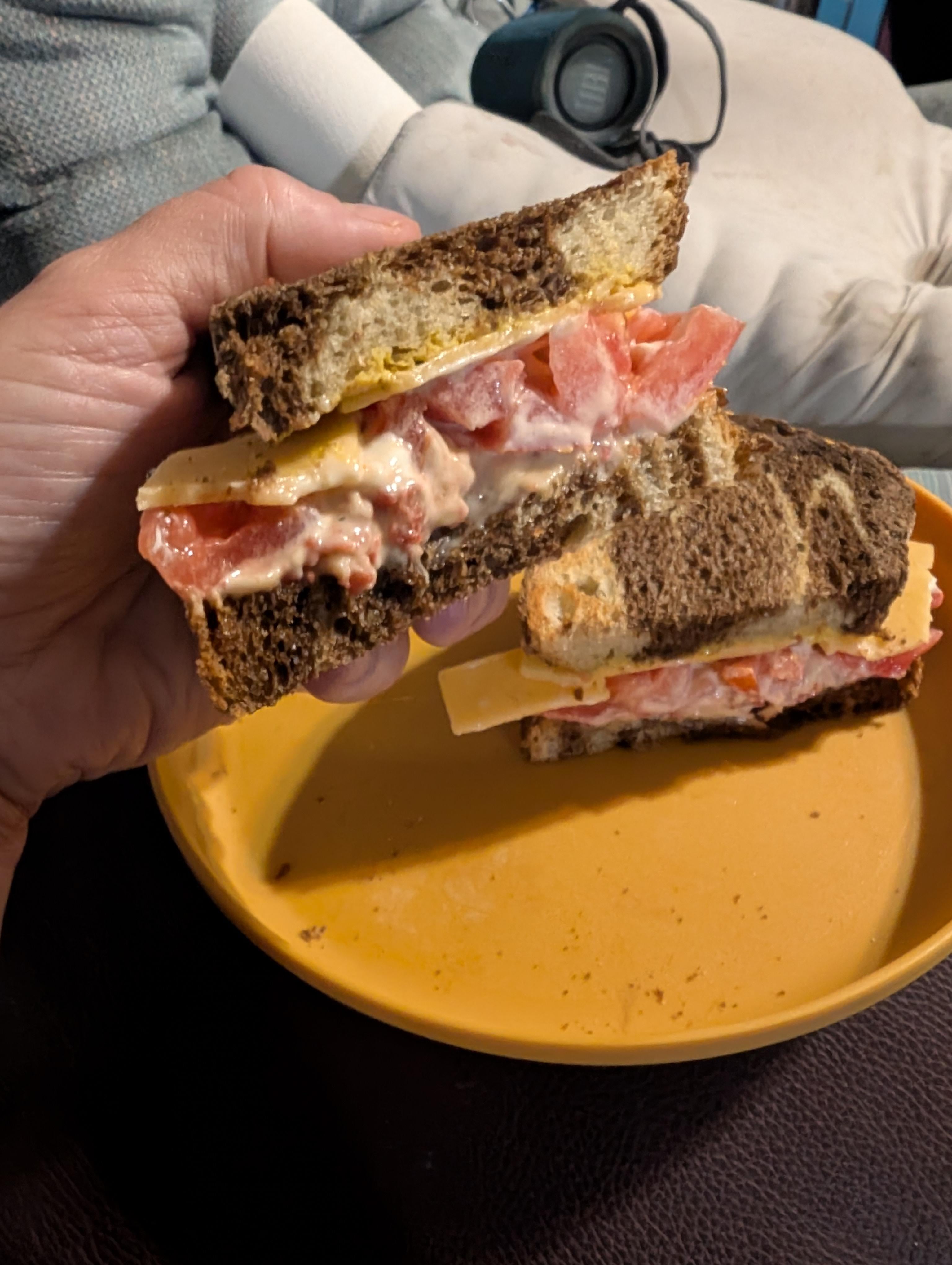 Smoked Gouda, thick sliced tomatoes, stoneground mustard, and bacon aioli on toasted marbled rye. Holy moly delicious . Messy in the best way by Commercial_Curve1047 Write A CommentYou must be logged in to post a comment.