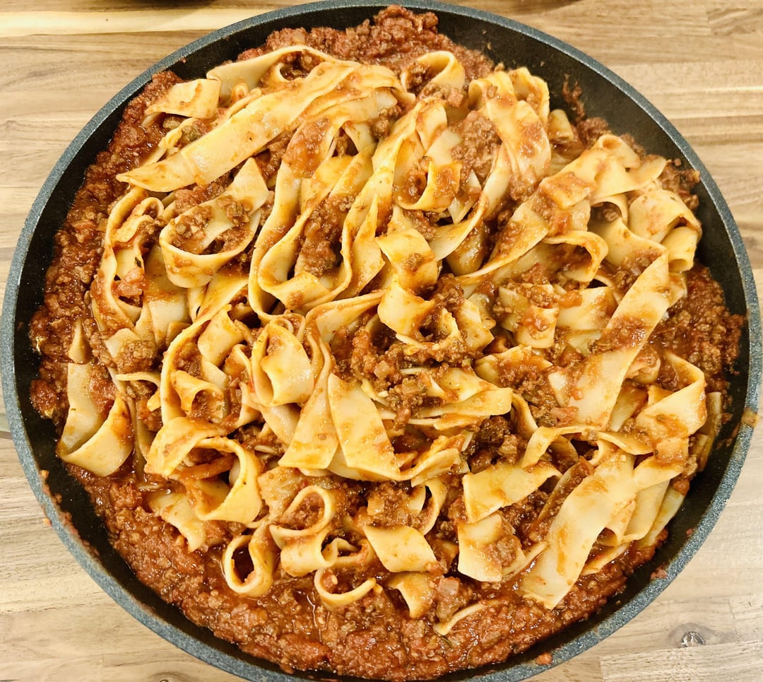 I made two batches of pasta to feed family along with a crockpot Bolognese (actually just a meat sauce) using both mezzi rigatoni and tagliatelle. Which pasta do you prefer for this type of sauce? The recipe link is in the comments below – not a true Bolognese, but delicious, nonetheless.