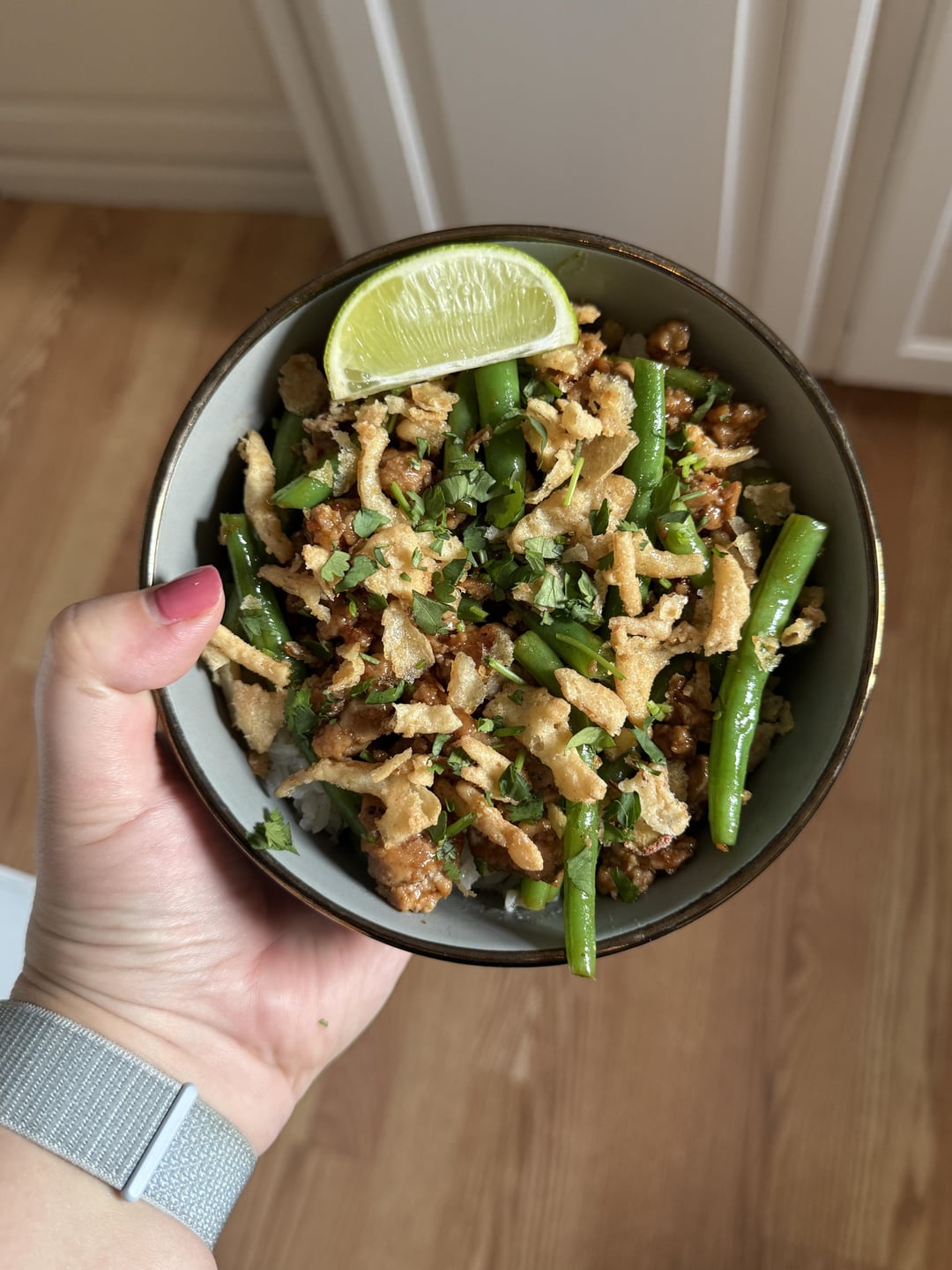 Love the crunch of the green beans. Sauce I thought was decent, my fiancé wasn’t a fan of it but we both thought overall the meal was good, not a home run fav though. I do love how hello fresh is having us try and incorporate different meats than we would typically choose and differently prepared meats like this ground turkey vs a typical ground beef.