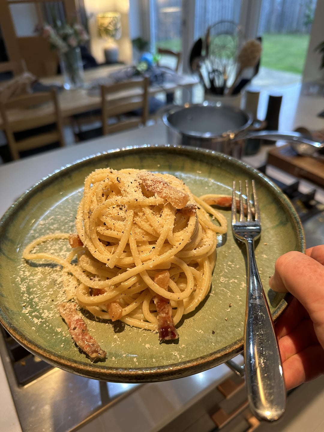 Seems like loads have been posted today! Guancialle, pasta, pasta water, egg, pecorino, pepper. Excuse the plating!by thesyncopation 2 Comments Kevundoe 5 months ago This sub is going all in on carbonaras today.. GlitterEcho 5 months ago Beautiful plate (both the actual serving dish and the pasta)Write A CommentYou must be logged in to post a comment.