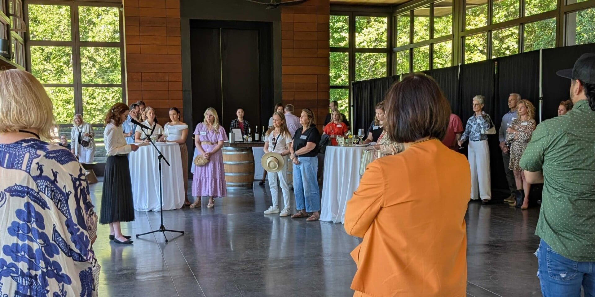 Karen McNeil speaking at Come Over October 2025 planning event at La Crema