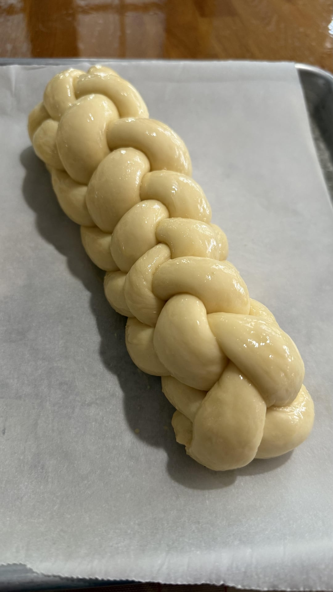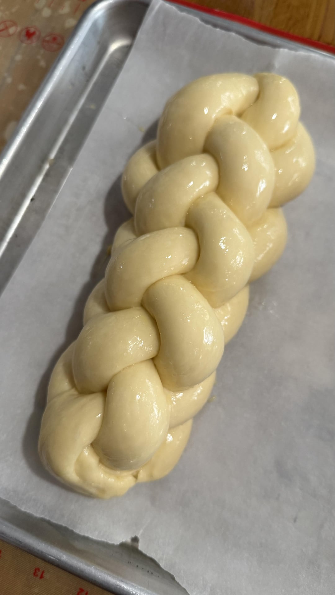 I baked for the first time in a long time today! Now the house smells like a bakery again! I made these challah loaves to use for banana French toast for my 11-month-old baby.