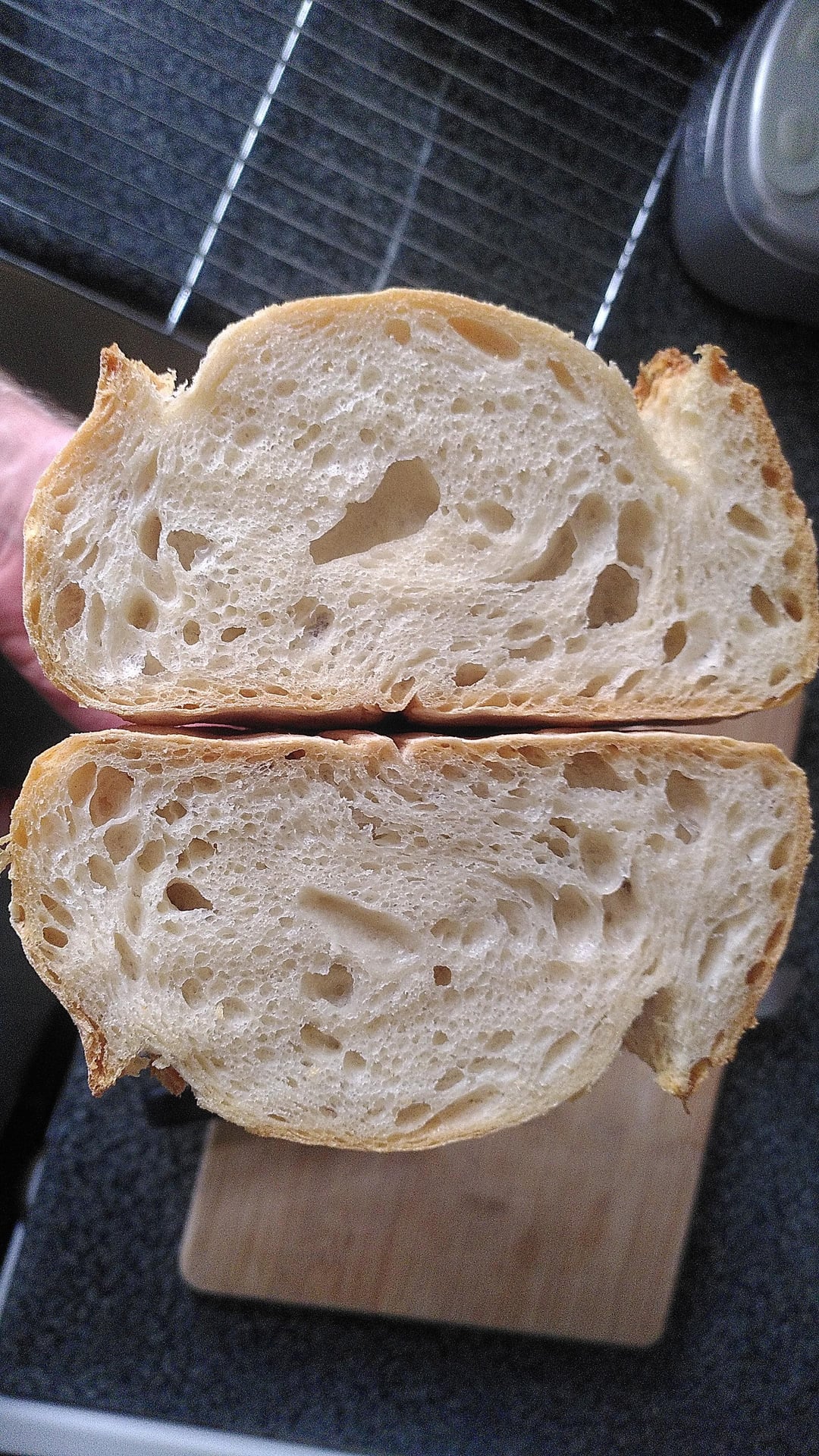 357g Flour: mix of Matthews strong white 12.5% and Waitrose organic strong white 12.9% (No reason for the mix, just making use of leftovers)