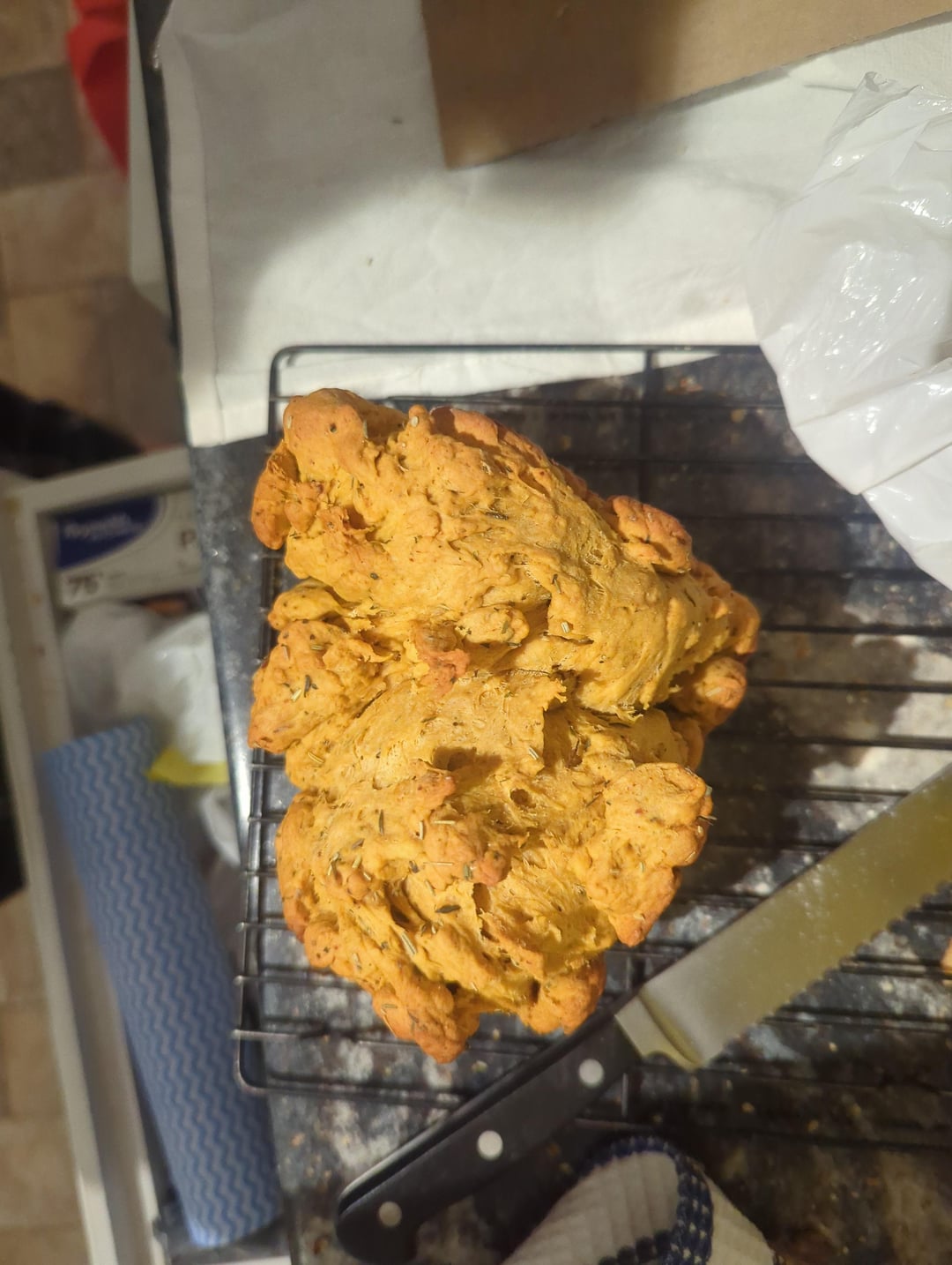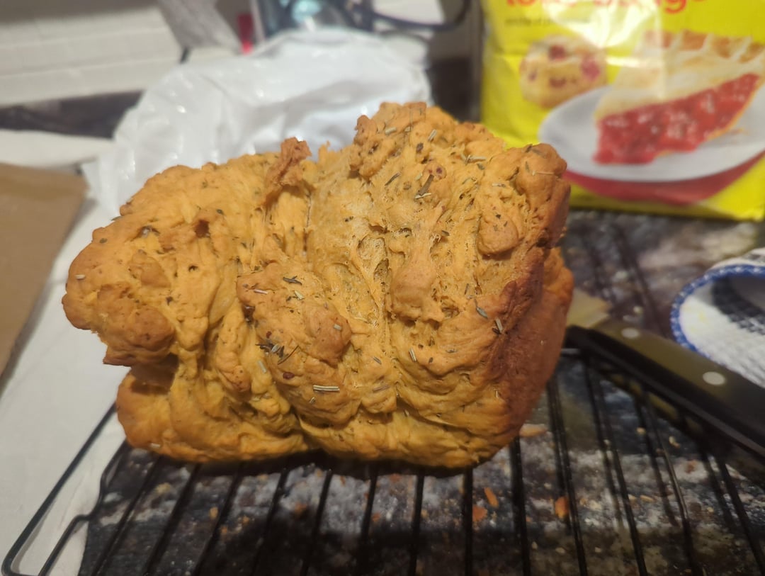Mixed up at the store, bought tomato soup instead of paste, made cancer. Texture would be described as "malevolent". Smell is enticing, presumably to lure me in so I can be killed for my sins against gluten. I would refer to the crumb as "dense and underbaked" if I was feeling gentle, "like an old mushroom had a baby with a brick" if honesty was required. Genuinely curious how, assuming I want to risk summoning Cthulhu's hemorrhoids again, I would go about substituting 1 cup tomato soup for 1 cup tomato paste? I still have both soup and hubris left.