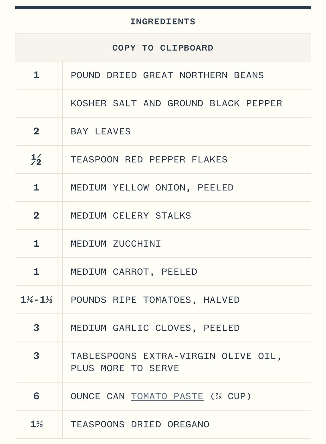 Recipe here: https://www.177milkstreet.com/recipes/greek-style-baked-white-beans-in-tomato-sauce