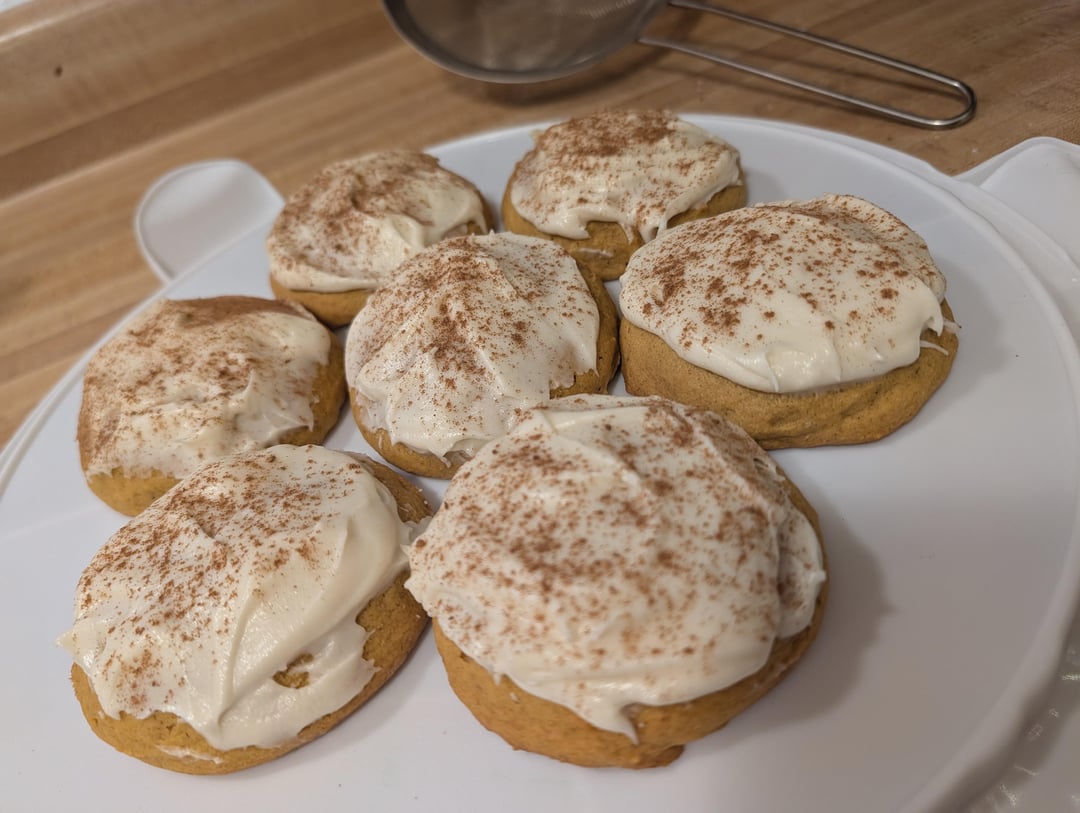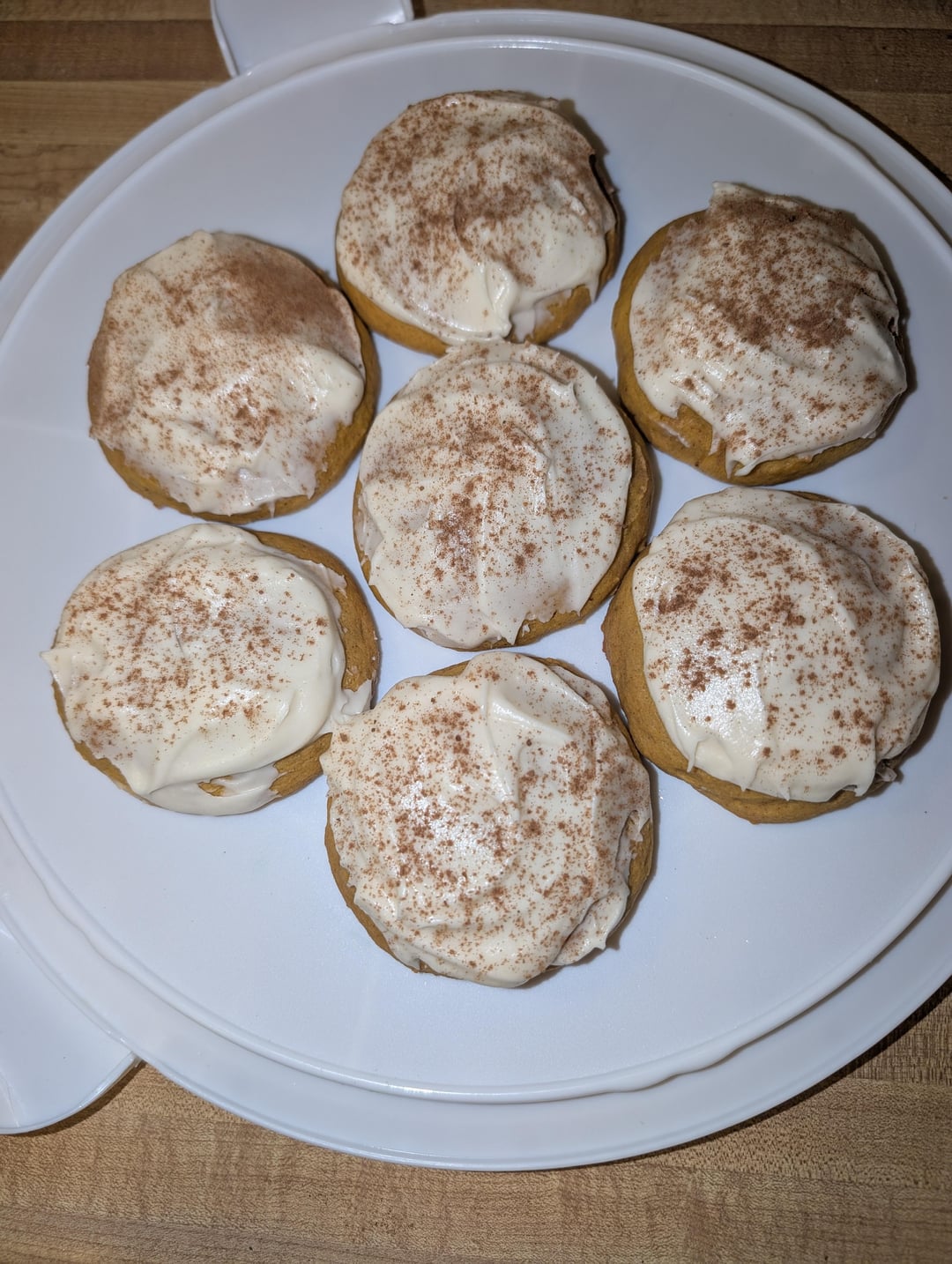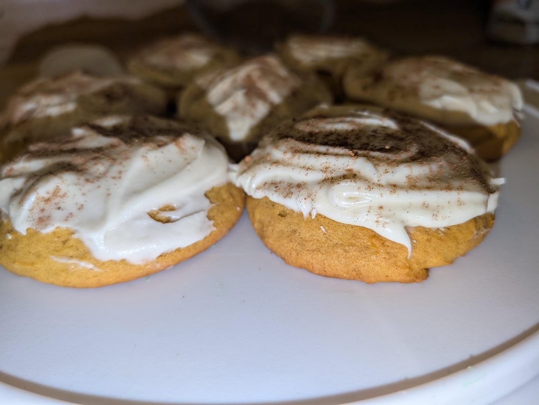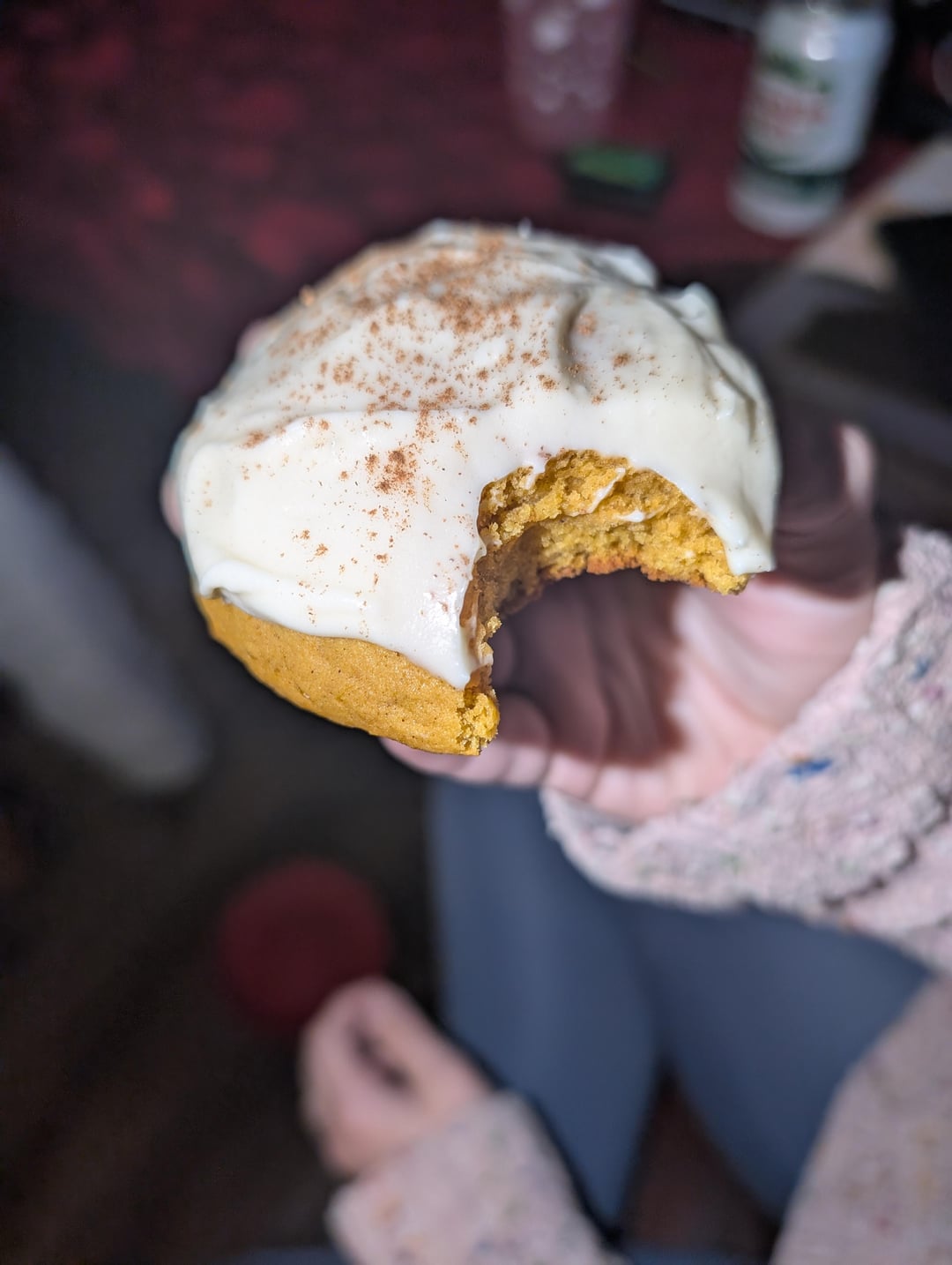 These remind me of a cookie I used to make all the time for work that people loved. They were vegan but I’m sure if you used more dough per cookie and whipped up some cream cheese icing you could easily recreate cookies similar to OP’s.