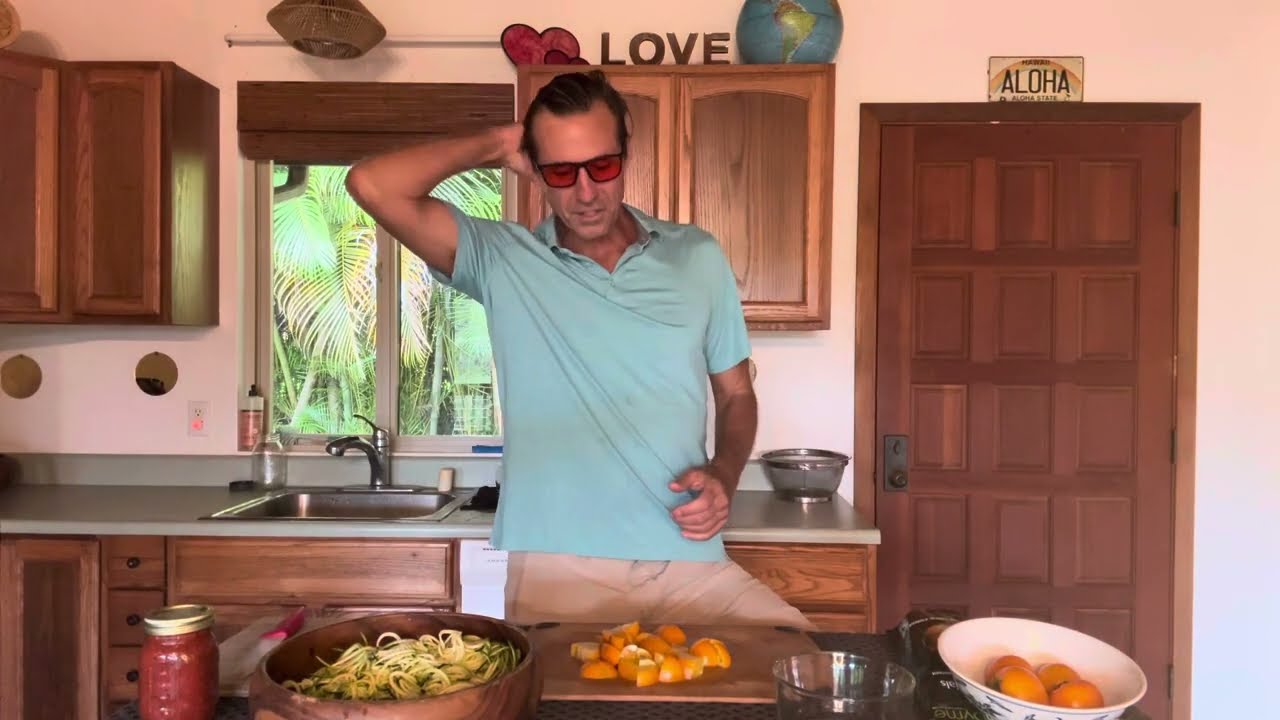 hey I got you a bonus video today on the video marathon this is actually a really cool little recipe it’s just going to take a couple minutes it’s a nice spaghetti okay I’ve been watching um a lot of Italian videos sometimes I do that when I’m water fasting i’ll uh watch all these food videos you know I wouldn’t want to eat it but I love the way that so many people are so passionate about their food and stuff but anyways so I’ve got these uh zucchini here that I um made into noodles with the spiralizer and then I’ve got some of my garden fresh salsa here and I’m going to pour that in the bowl here and I’m going to add a little bit to that to really make it super nutrientdense i’m going to add the natural protein some of you may or may not know I just uh broke a water fast and I’m just trying to get you know uh just trying to get jacked up pumped up for the next one saturate my body so I like to put all the 22 essential amino acids in here it’s very filling and it’s very nutritious and it’s very delicious though but we have one serving left so I’m going to make a big paradigm order tomorrow uh so that’s all 22 essential amino acids that’ll keep you just purring like a kitten you know what I’m saying i think it’s very important for mental health as well um just because it’s you know you can get all 22 essential amino acids from everywhere but when you have them all in one spot that’s when you get pono this is the antioxidant vitamin A sweetener smoother life essentials this just takes it to another level of nutritional density and flavor and taste and texture so that’s my fresh garden salsa this is one of my favorite things on earth right here is you know fresh vegetables and herbs from my own garden ground up put into the jar and then I add the life essentials from the pure natural and I just give it a little stir and it’s an amazing and one of my favorite ways to eat this is with just nice uh very water richch romaine leaves but you can dip um celery in it carrots you can uh make it into a pasta sauce you can do zucchini chips uh or you can use this as a salad dressing veggie dip whatever you want to do so there’s that portion of it there that makes it just so hardy and then it absorbs some of the moisture and makes it nice and thick so that goes on use my little scooper here i got a couple more things to add on cool i’m probably going to add some uh lime juice to that too in fact I’ll uh But I’ve got some of these amazing tomatoes i mean I’ve never had anything like this these are the best of the best new crop yellow i’ve never had a tomato this sweet in my life i’ve never tasted anything like this that one tasted like an apple not kidding and then I’m going to go with avocado and that’s it going to add that lime look at this mango look at that sucker if you could smell that you’d know what heaven really smells like got that today got a pineapple so blessed so blessed i don’t want too much lime but I just wanted to give it a little spritz and there you go that’s an amazing you could obviously go in a thousand different directions but that’s going to be a delicious meal it’s time to chill out i had a long hard day at work and I popped off a bunch of videos too i hope you appreciate that i’m doing a class tomorrow on the miraculous healing power of water fasting for physical emotional mental and spiritual regeneration so I hope you’ll join me on the Elite Video Club where I can just let it all hang out thanks everyone for your love and support and thanks for the thumbs up and the comments and sharing the videos and anything you can do to help your boy out i sure do appreciate it all right have a great day enjoy your wholesome natural food and whatever you eat eat it with love in your heart in a calm peaceful environment you know that’s the main thing is to really sit and be present and enjoy and be grateful for the food that you eat