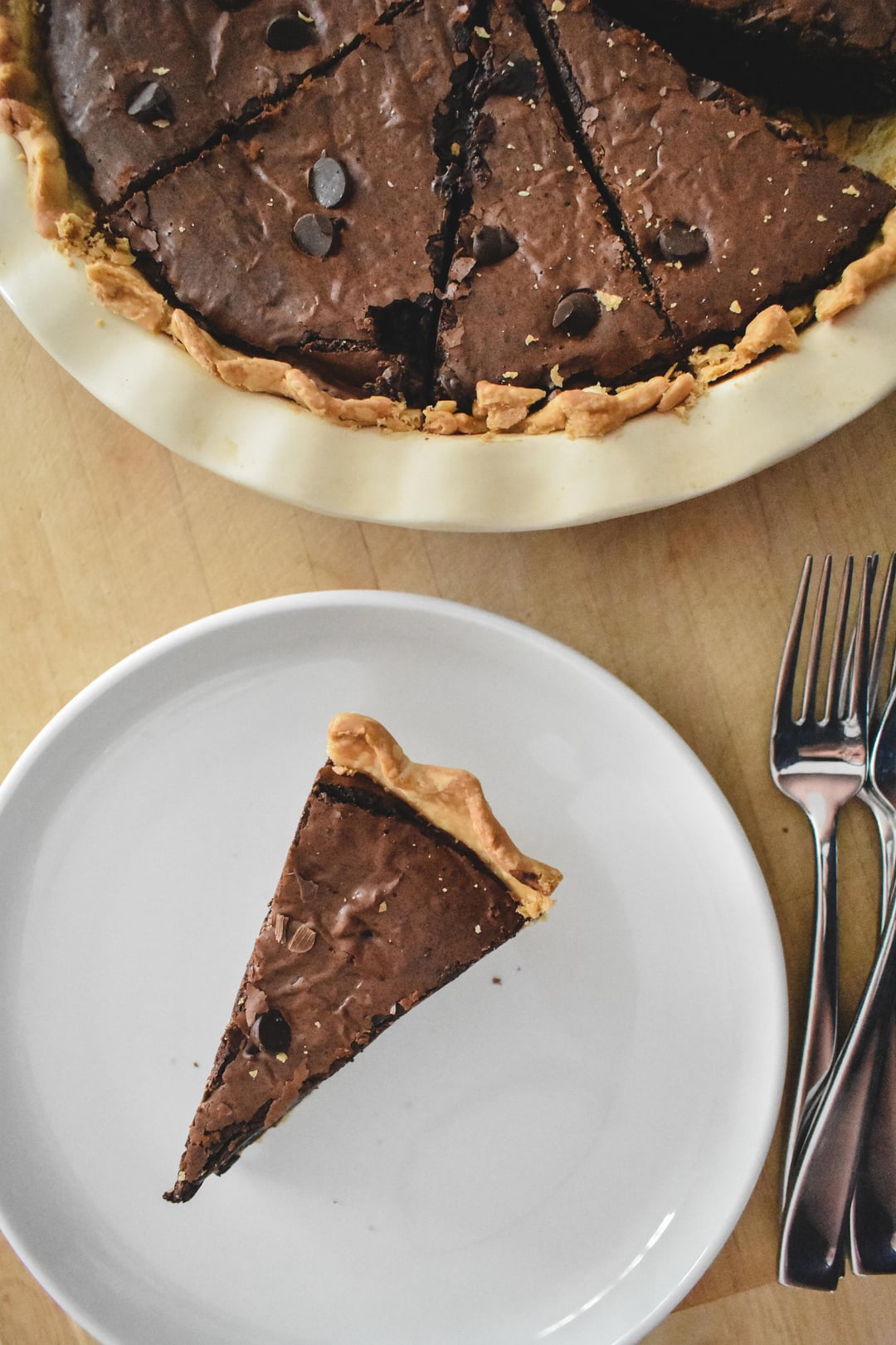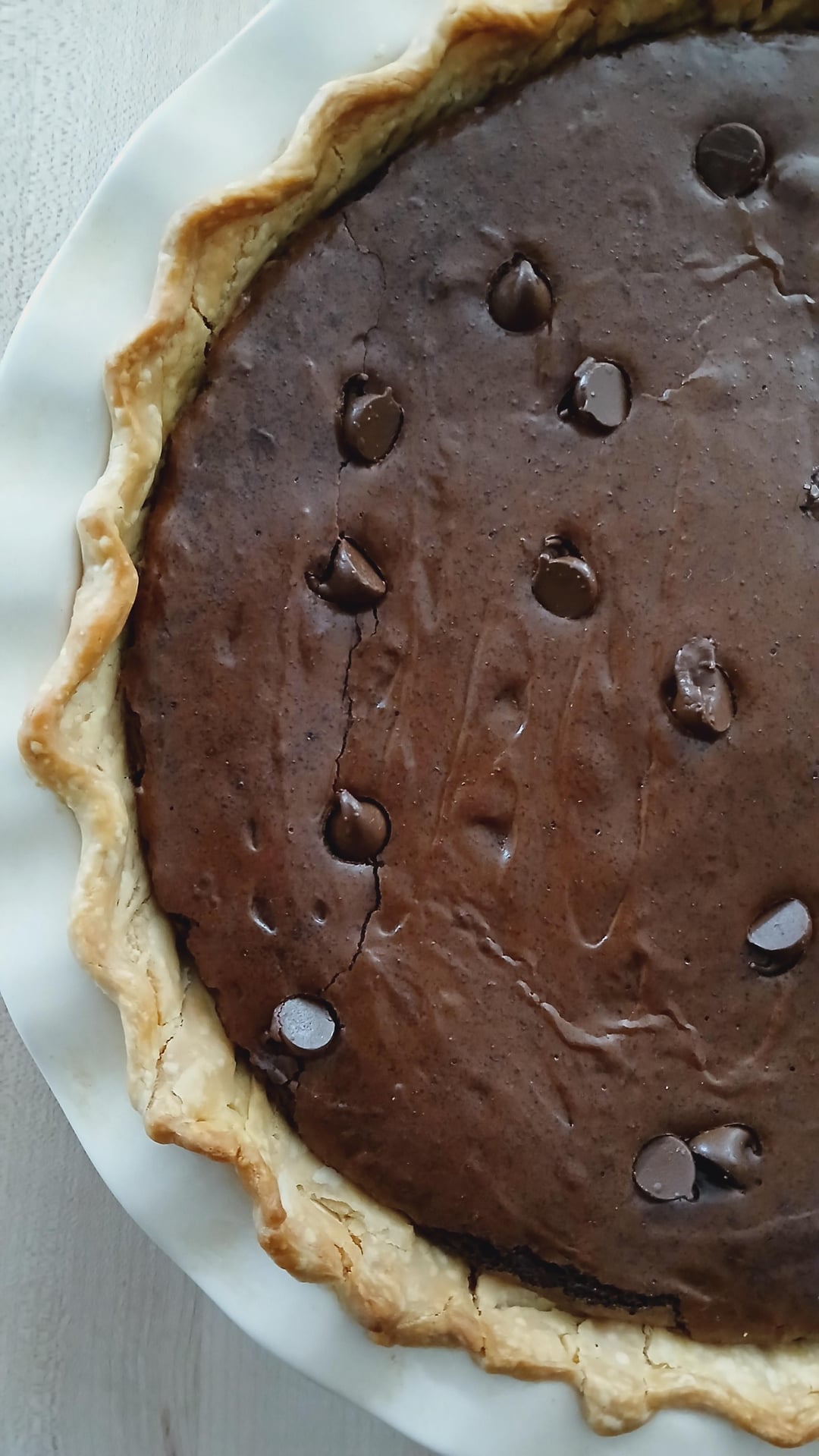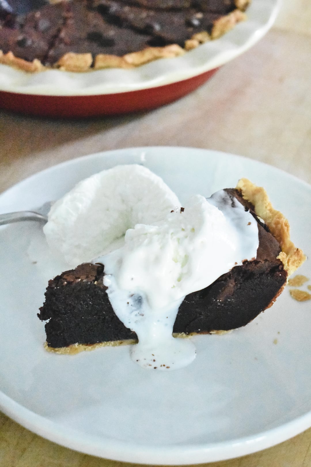 I turned THE Reddit brownie recipe posted a few years ago (find original post here) into a brownie pie. I used a deep dish pie pan and it was perfect. If you have a shallower pie pan, maybe half the recipe for the brownie batter.