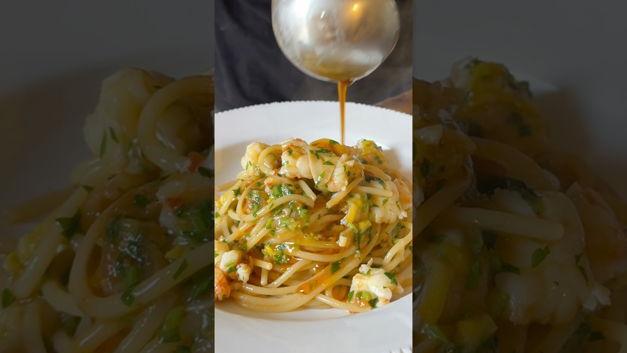 prawn and corette spaghetti now this one’s a real treat m so we’ve got lovely prawns head on we take the heads off we’re going to make maximum flavor out of those we roast them off with butter some tomato paste some other spices and that’s going to yield a lovely red butter that’s what we’re going to cook the pasta in so you want to prep the prawns take out the bodies chop them up grate some corettes lightly salt it and we’re going to make some lovely fresh tomato conquests so that’s just like a fancy word for saying tomato squares thinly slicing garlic and then it’s time to cook the pasta so in with the garlic and in with the prawns and the corettes and the tomatoes bit of white wine open like a redneck roasted prawn head butter and then toss in the lovely al dente spaghetti lots of parsley as well toss toss toss and uh we’re good to go that is one gnarly plate of food prawn and coette [Music]