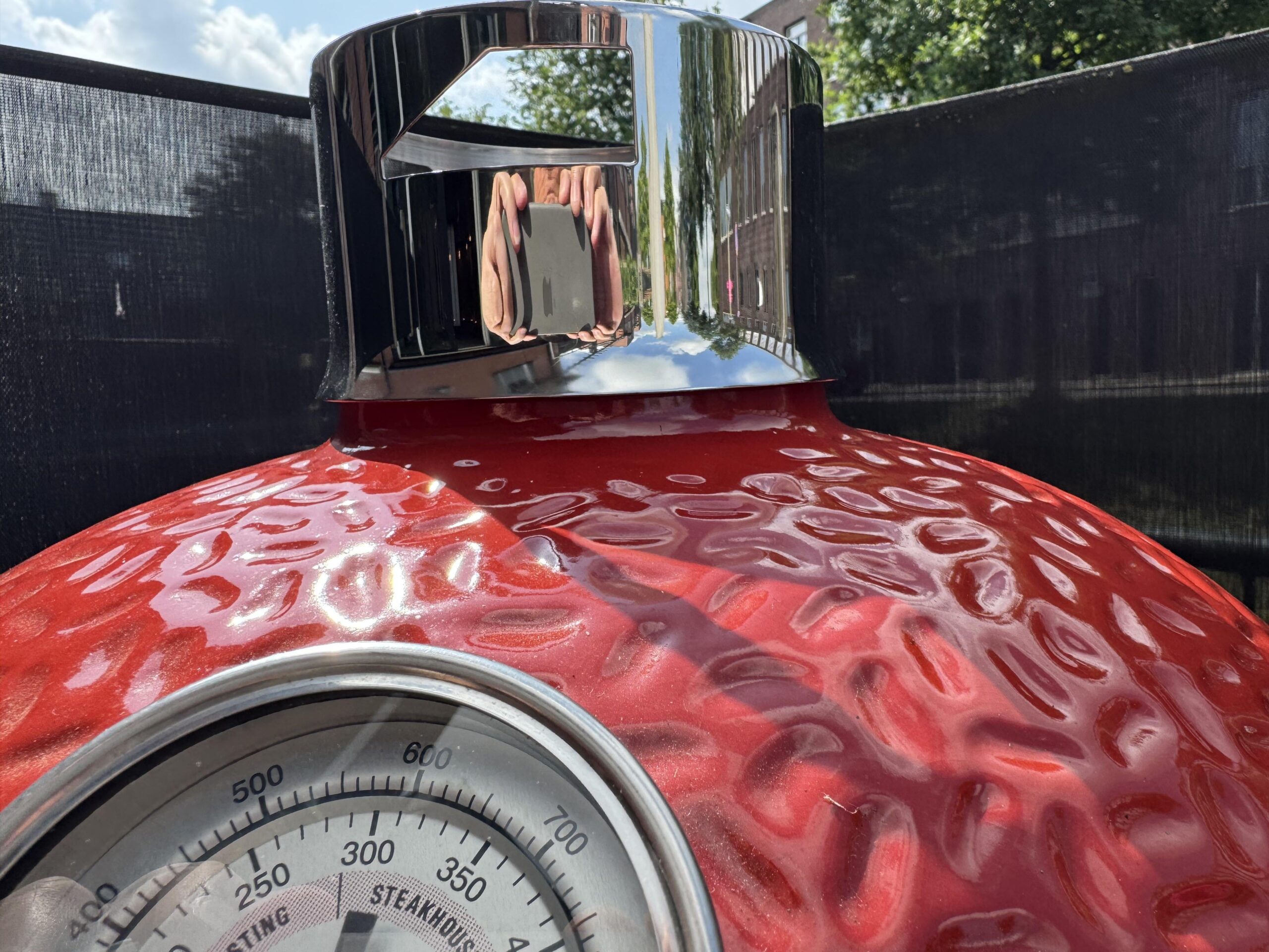 When I bought the Smokeware Chimney last year, it wouldn’t fit properly on my Classic 3. I removed the original tape from the Joe and replaced it with the tape that came from Smokeware. It’s a simple process, and the chimney now slides all the way down.