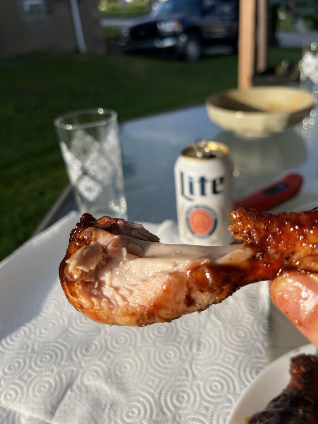 Those look great! Next time take a sharp knife and ring the bone at the thinnest part. This will cut the tendons and makes eating the leg easier. I started doing this a year ago and it works for me. All the best!