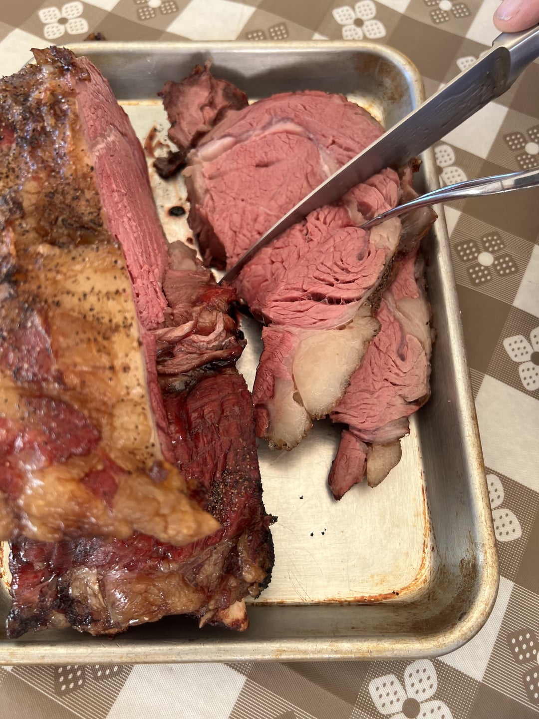 Little more cooked than I do mine, but I’d definitely still eat it happily and probably want more, but I’d try for more crust next time, make sure that surface is really really dry before searing, I usually salt mine well in advance (smoked salt mixed with homemade rosemary salt) and have it sit in the fridge uncovered on a rack over a tray so there’s good airflow to really dry the surface out, then hard hard sear before a nice slow cook to about 125 inside, and save all the fat and juices for the love of all that is good and tasty. And I love it with a strong horseradish cream sauce