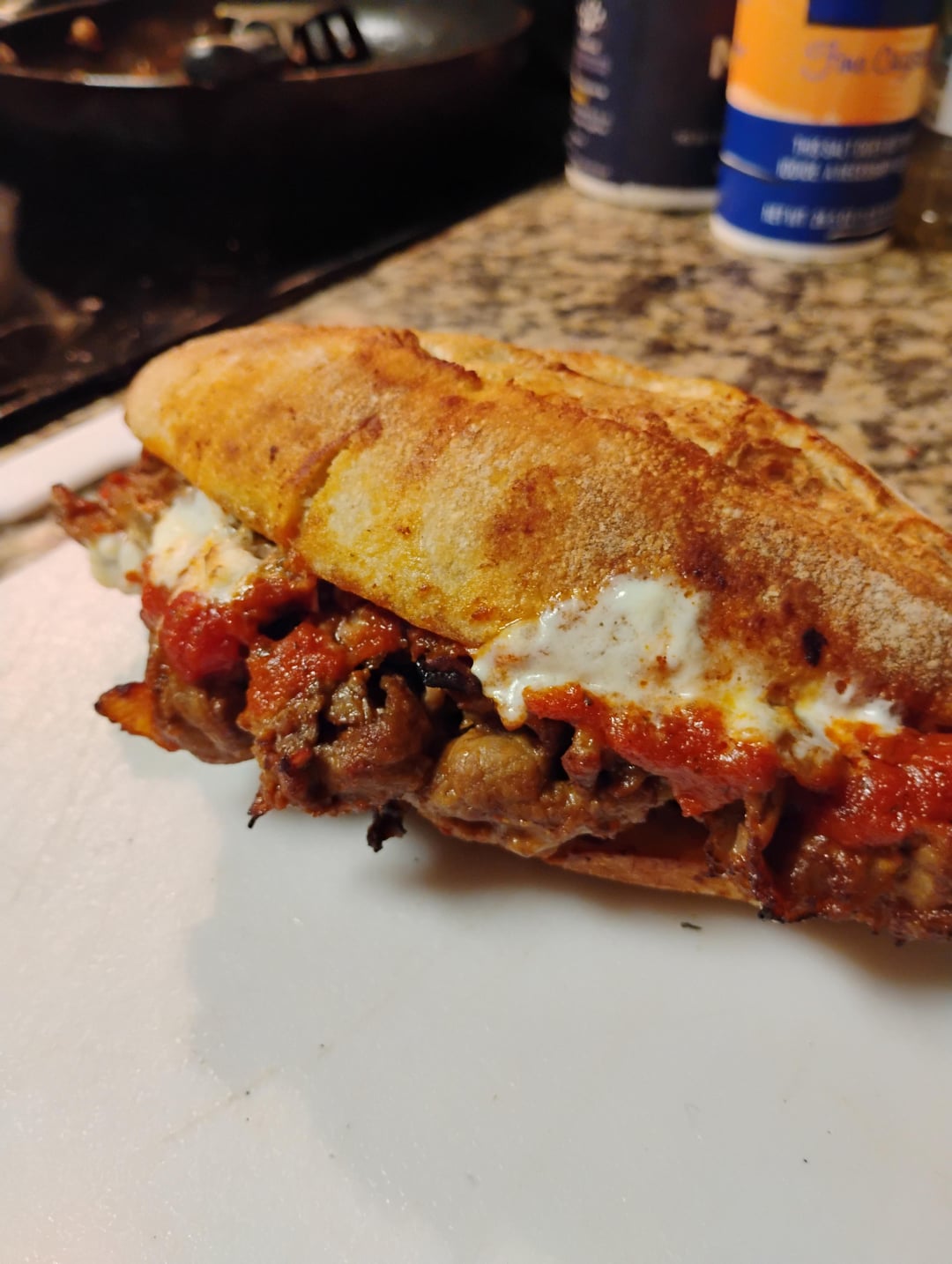 Yesterday made a Sunday gravy (with only Italian sausage, didn't have the funds for multiple meats don't judge) that I slow simmered for about 4 hours then decided to use it on my already planned cheesesteak dinner. I'm going to make penne to use the rest of the sausage, which I sliced up, and sauce then dust it like Pablo Escobar's coffee table with Parmesan cheese. Boom. Now I have 4 nights worth of dinner for the week.