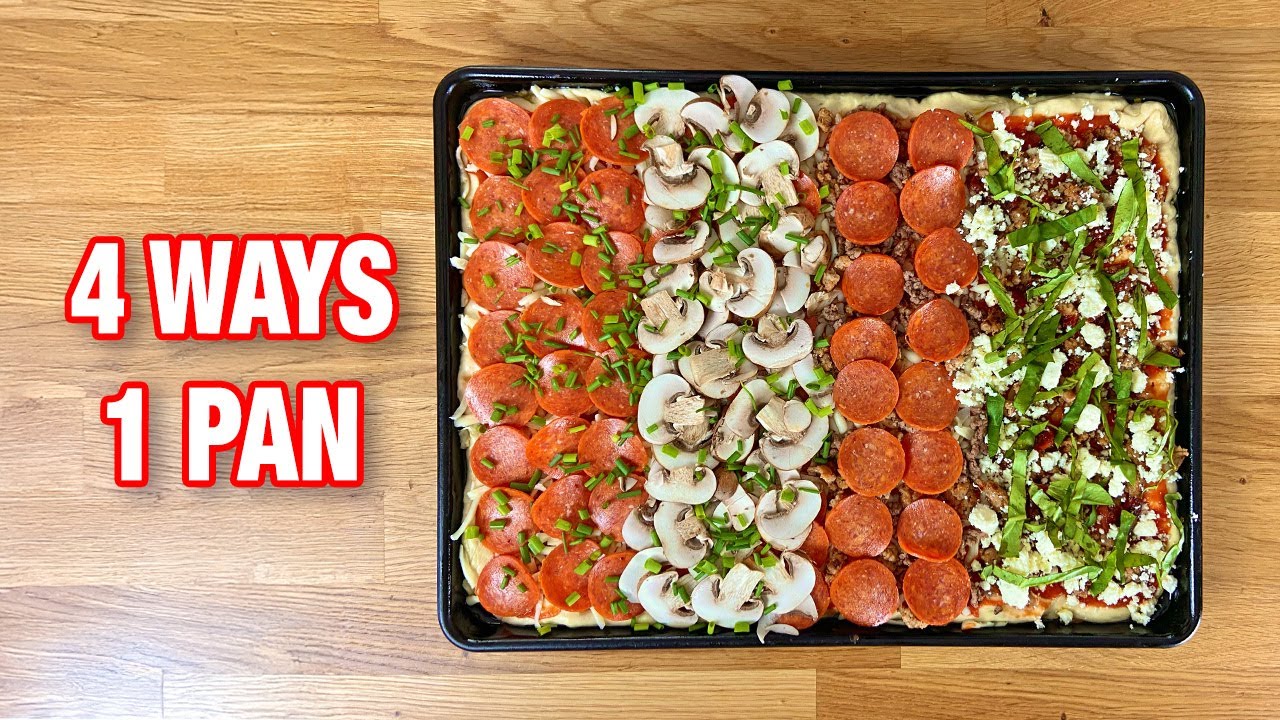 look at that oh I just lost it hey pizza lovers today we’re making an easy same day fkaca pizza recipe that’s fluffy crispy and get this ready in under 2 hours and the best part we’re loading it up with four amazing toppings combos all in one pan that’s right maximum variety minimal effort that’s my kind of meal quick backstory we used to have a solid pizza Friday tradition i would make three pizzas one for my kids one for my wife and one for me but then our oven died for over a month no more pizza Fridays that made me sad with no oven I had to get creative found a simple fkatcha recipe whipped up my sauce and toppings tossed the whole thing outside on the backyard barbecue and boom the pizza Fridays were back in business eventually the oven got fixed and I brought the pizza party back inside stick around let’s get into it let’s start with the dough we’re going to start with 1 and 1/2 cups of warm water to that let’s add 1 tbspoon instant yeast let’s mix that up we’re going to let that sit and activate the yeast usually anywhere between 5 and 10 minutes let’s set this aside let’s get our dry ingredients going let’s add 3 and 1/2 cups allpurpose flour [Music] to this we’re going to add 1 and 1/4 teaspoon salt now let’s whisk that together now let’s add 3 tablespoon of your favorite extra virgin olive oil all right it’s been about 10 minutes there it is let’s combine our wet and dry ingredients i’m just going to give this a little stir up get all that yeast off the bottom we’re going to pour that in got my dough hook we just want to mix to combine but first we’ll start out low [Music] okay one shaggy dough there it is let’s put our dough in a airtight container we’re going to drizzle two to three tablespoons of olive oil on the bottom here mix that around a little bit make sure the bottom’s coated and we’re just going to scrape that in there okay now that it’s in here what we want to do is we want to coat the whole thing in the olive oil so it doesn’t dry out we’re just going to leave that cover and let it rise for 1 hour in a warm spot alternatively you can put it in a bowl and just put a towel on it or you can have it in a glass bowl and put some plastic wrap around it all right let’s set this aside let’s set our timer for 1 hour here’s our dough at the start now on to the sauce all right we’re going to add our tomatoes 6 oz tomato paste add one teaspoon salt and 2 tablespoons olive oil i like using my immersion blender cuz it’s fast it’s easy and clean up takes a few seconds perfect get our toppings ready i’ve got a whole milk low moisture mozzarella here let’s get that grated that should be enough that looks pretty good let’s taste it oh yeah let’s chop up our mushrooms i want them kind of thin so that they can dry out and get all toasty all done let’s cut up some of these lovely green onions from my wife’s garden i It’s my garden too but I don’t do any of the work there they are all right next we’re going to cut up some of this beautiful basil from our garden basil’s coming in nicely this year i’m just going to do like a julenne slice boom look at that let’s cook up our sweet Italian sausage [Music] that’s looking pretty good right there it is now let’s cook up our ground beef salt and a little pepper [Music] okay so I’m going to strain the fat all right let’s transfer that to a bowl and let that cool before we put it on the pizza all right we’re 45 minutes in on our rise of our dough got our sauce ready we’ve got our cheese grated we got all of our toppings prepped and ready to go let’s get our pan ready to go about 2 to three tablespoons maybe a little more of olive oil so we want to have it a generous amount of it in there we’re going to take our dough our cans are already olive oiled up so we’ll take this dough this has been about 45 minutes in we’re just going to stretch it out a little bit [Music] we got 15 more minutes for this dough to rise this will rise more in the oven so we’re going to go ahead and preheat our oven we’re going to preheat the oven to 450° F the hour of rising is up all right now let’s get our sauce on there about three of these per area like this [Music] so when I was a boy my godmother took me over to my godfather’s Italian bakery and we go in the back just then he pulls out the tomato sauce and green onion fkatcha out of the oven and I was excited so he sees me gasping or something because he immediately takes a fkatcha throws it on the big huge baker’s table slices off a corner and hands it to me it was still like hot from the oven and I immediately picked it up took a bite and it was amazing probably the most amazing bite of food I’d had up until that time in my life that’s why I think I love fkaca so much now okay we’re going to break this into four quadrants the first three quadrants we’ll spread some of that cheese on there this is that whole milk mozzarella that we grated a little earlier first quadrant pepperoni [Music] this next one is pepperoni and mushroom [Music] there it is mushrooms next up this quadrant here is a meat lovers this is our Italian sausage some seasoned ground beef we’re going to finish this one off with some pepperoni [Music] last one we got some Italian sausage and a little bit of sundried tomato got some feta cheese and this beautiful basil [Music] and then what I forgot to do was add some green onion to the first two let’s bake it up [Music] set that for 25 minutes until edges are golden brown and the cheese is bubbly and slightly caramelized okay time’s up take it out of the oven [Music] look at that sizzling hot and slice it up you can see the quadrants nicely here hope you can hear that crunch [Music] and this quadrant has expanded a little bit i think I’m going to go for classic pepperoni [Music] oh [Music] oh I just lost it you know those videos where you see people and they’re h