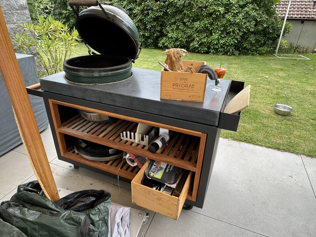 I live near the Swiss Alps, we use the BGE mostly between end of April and October, 2-3 times a week. This is how my egg looks like from purchased brand new in 2016ish. Never seen a gadget replacement or a soapy wipe down since. Lately, the grease on the outside is bothering me, so is the sticky wooden handle. Do you have any tips on how I can clean the outside? I met the green egg area representative over the weekend coincidentally and he said the ceramic is quite delicate, I should put wet towels across the ceramic over night to let the moisture work through the grease… is this it?