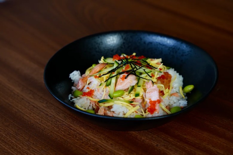 Hapa Bistro’s a la carte lunch menu includes chirashi sushi with grilled salmon, egg, edamame, vegetables and shiitake mushroom ($15.75). Courtesy Hapa Bistro.