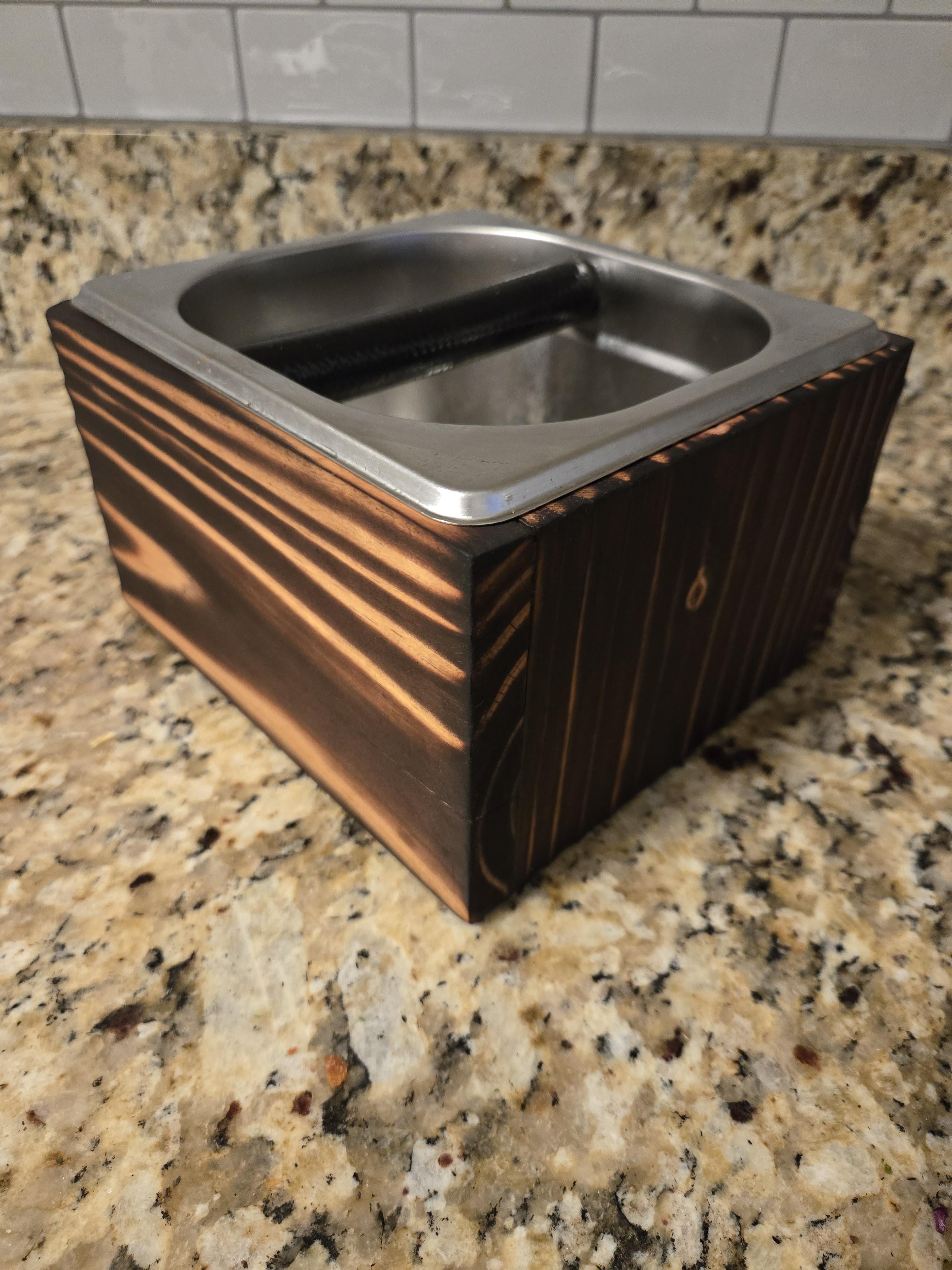 First real attempt at woodworking. Thought it turned out pretty well. Next project will likely be a bean cellar with a similar finish. For those curious, I used scrap pallet wood and a propane torch.by EricWNIU 10 Comments zhrimb 10 months ago So much better than that cafeteria steel lol – nice work netwolf420 10 months ago This is very nice! I’ve wanted to do something similar for a long time joochung 10 months ago Well done! Looks nice! quasistoic 10 months ago For bonus points, make a lid, either with full coverage that you take off for knocking, or just the rim, for an even more finished look. EricWNIU 10 months ago A lid is definitely in the plans. First I would like to router the top edges a bit, so the metal part sits recessed in the box Grimdek 10 months ago I like it – it’s weird that the grains aren’t all horizontal / verticle mooreads 10 months ago Nice work. Pull a couple extra shots to celebrate. izabela_03 10 months ago looks nice iBeReese 10 months ago Looks great! What’s a bean cellar? ModernistDinosaur 10 months ago I’m actually looking into getting one of these stainless steel inserts and keeping it bare because I’m a freak. 😇Write A CommentYou must be logged in to post a comment.