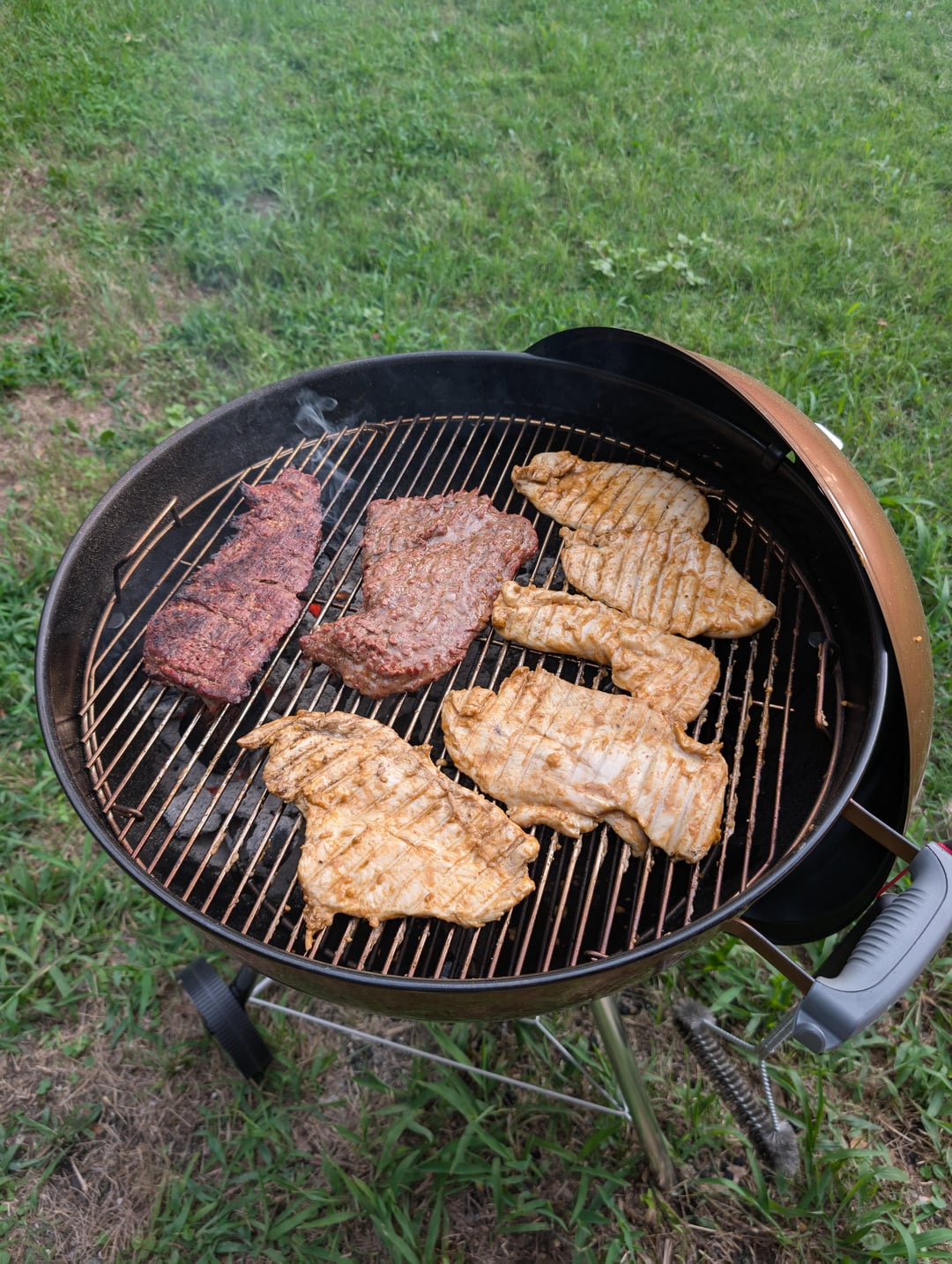 Upgraded from a cheap Walmart grill to a Weber Kettle Premium and I am very pleased! Grilled some skirt steak, chicken breast, and corn on the cob for some street tacos.