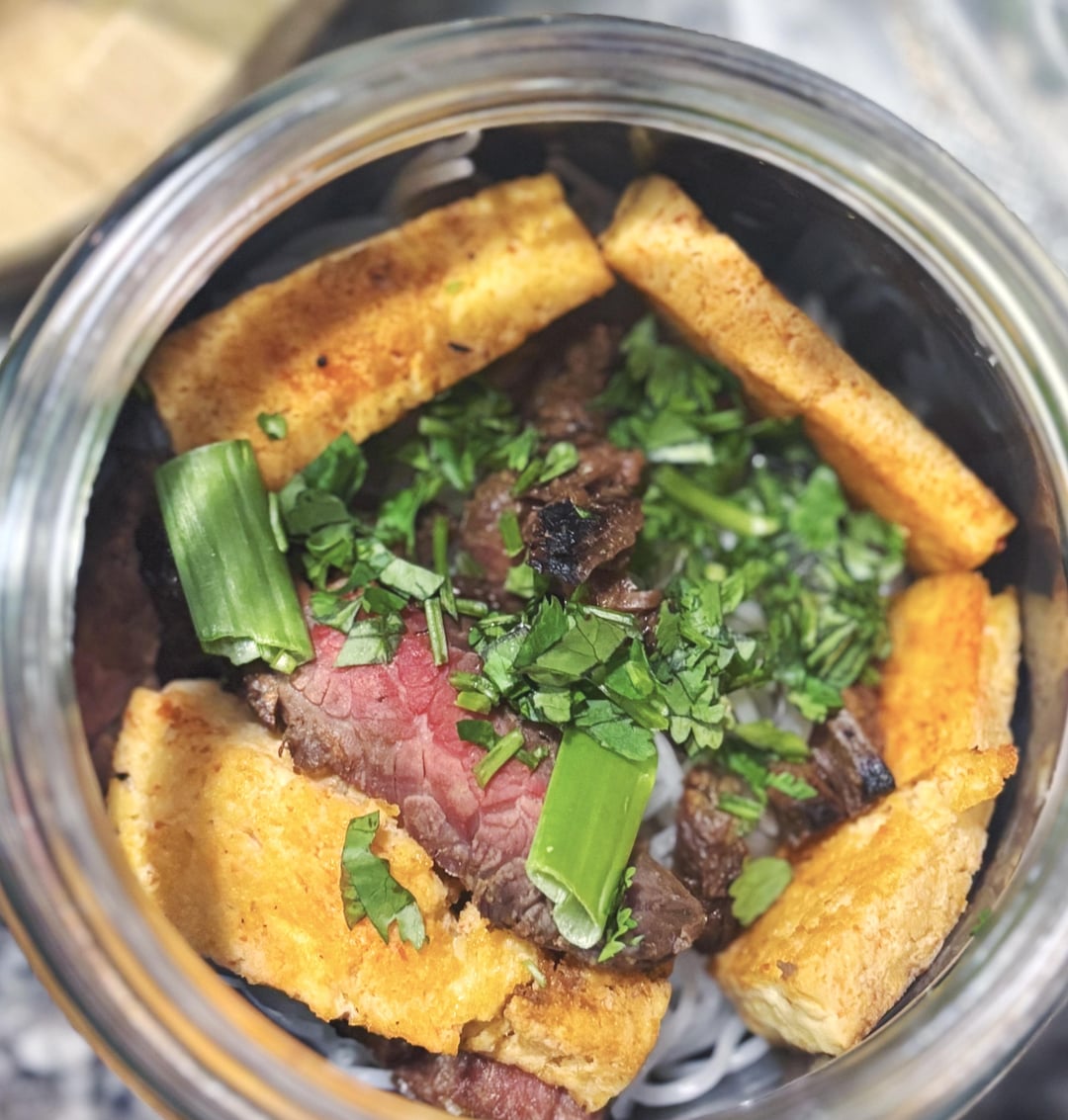 I had some beef and sriracha tofu left over from the spring rolls and just added those to the soup.