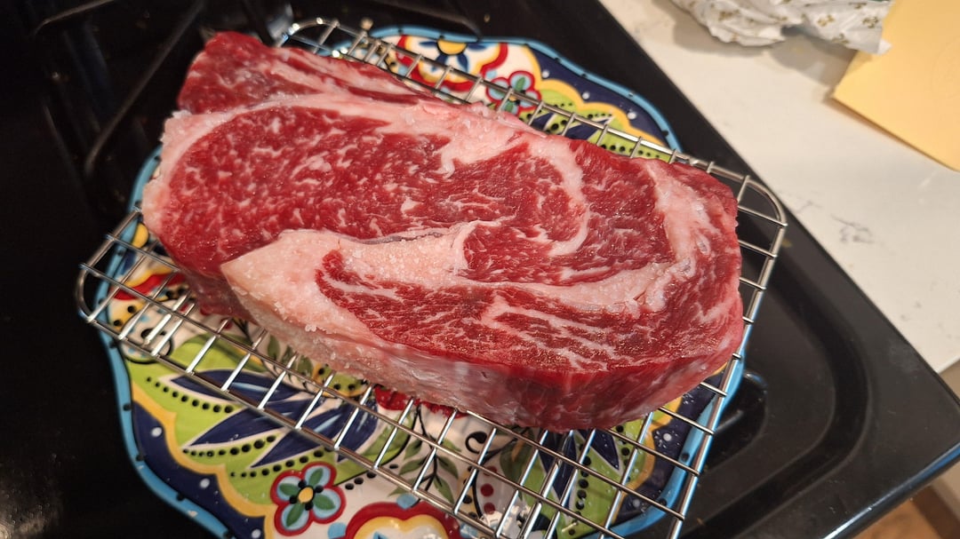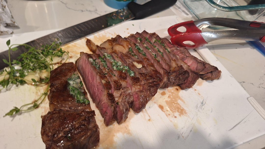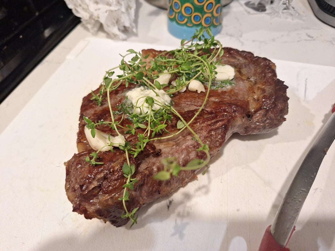 Reverse sear, took it to 120 on the cool side of the grill. Then took it off, crank the heat and put on the cast iron pan. Gave it a good couple minutes on each side. Still a good amount of gristle but I rarely cook ribeye so not sure if that was avoidable, but extremely tender all around. The asparagus was fabulous as well. Peeled & blanched earlier in the day then sat cooking as I seared the steak. I love having the time to prepare a nice meal.