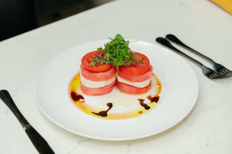 Bistr09’s watermelon and tomato salad benefits the San Antonio Food Bank’s San Antonio Restaurant Weeks campaign to raise funds for children in need. Credit: Albert Villasana for the San Antonio Report