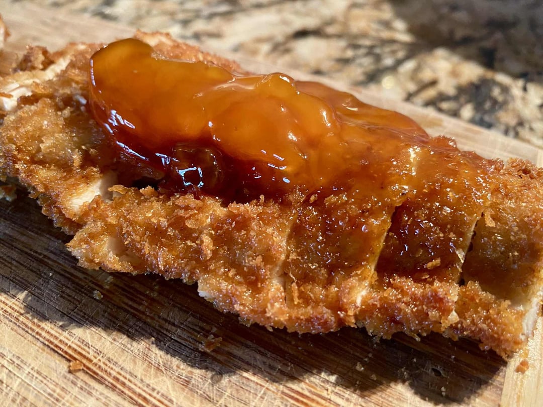 Shoyu cured egg yolks for 24 hrs. I smeared this on the Katsu and also drop a yolk on top of the noodles for some extra creamy goodness.
