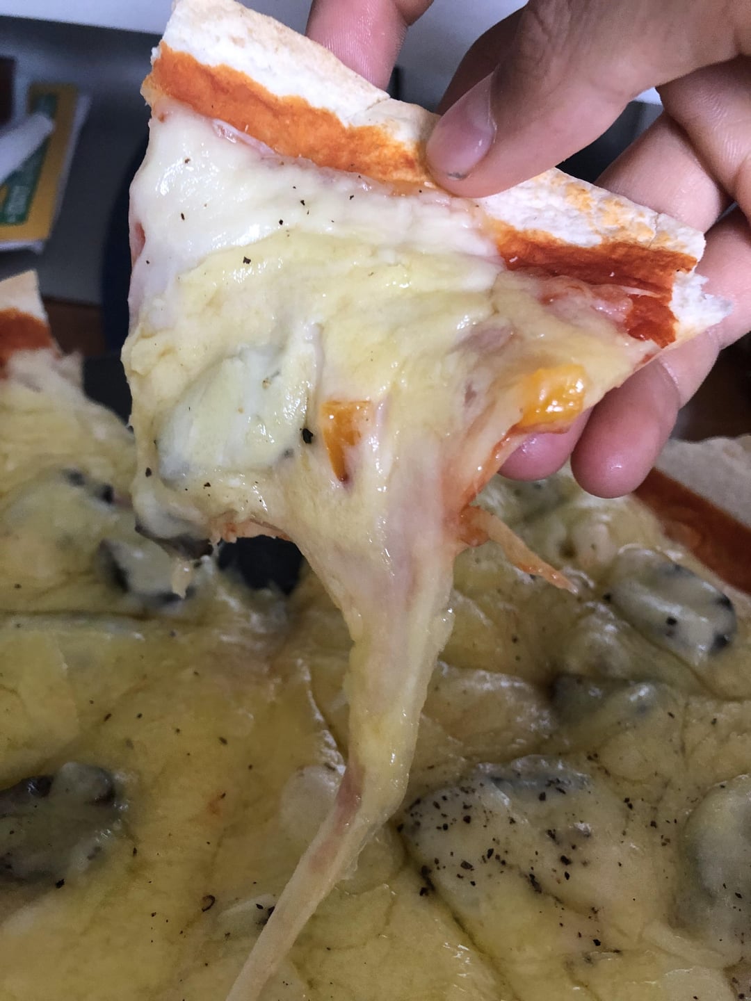 bro what the hell happened to that pizza, it looks like a cracker