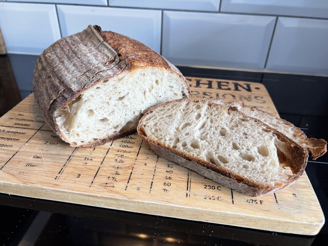 Sourdough #3 is currently in process – temperature at 10:45am is 25.3°C and creeping up – so my aim is to try and learn from the last one and not push it for as long on the bulk.
