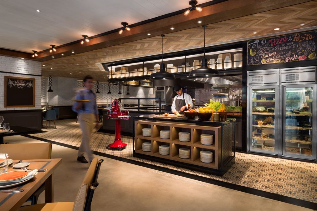 The menu features standout creations emblematic of this fire-led philosophy. Cedar-Roasted Burrata is paired with cherry tomato and charred leek, while the Spicy Lobster Spaghetti offers a bold mix of pomodoro lobster sauce, chili aioli, and fresh cherry tomatoes. Baked Taglioni combines prosciutto cotto with Parmigiano Reggiano, accompanied by wood-fired pizzas such as the Alla Positano with salami, pepperoncini, and spicy honey. Other highlights include Grilled Chicken with roasted mushrooms and onions, and fire-kissed or salt-baked Branzino finished with lemon, capers, and olive oil.