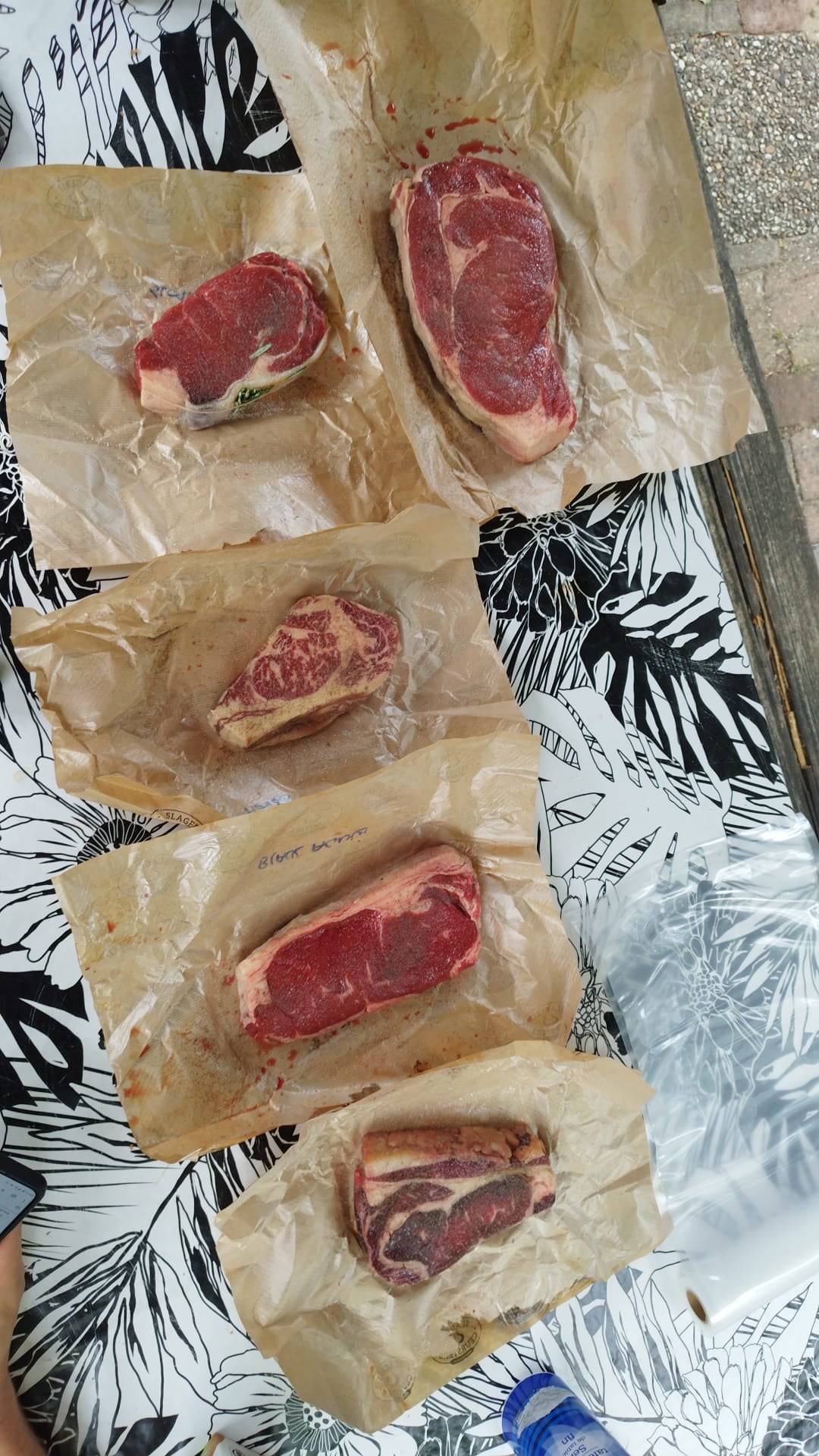 All seasoned with salt and a bit of pepper, some with some thyme, some with some rosemary. The Jersey steak without herbs. We all had them in a bath of 53°c and grilled them on a very hot BBQ afterwards. The consensus was that Holstein was by far the tastiest.