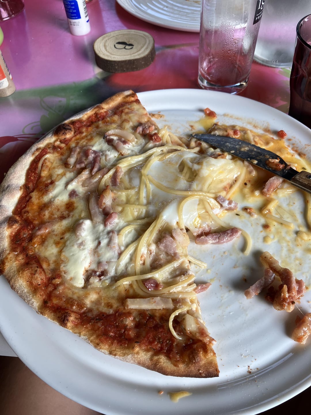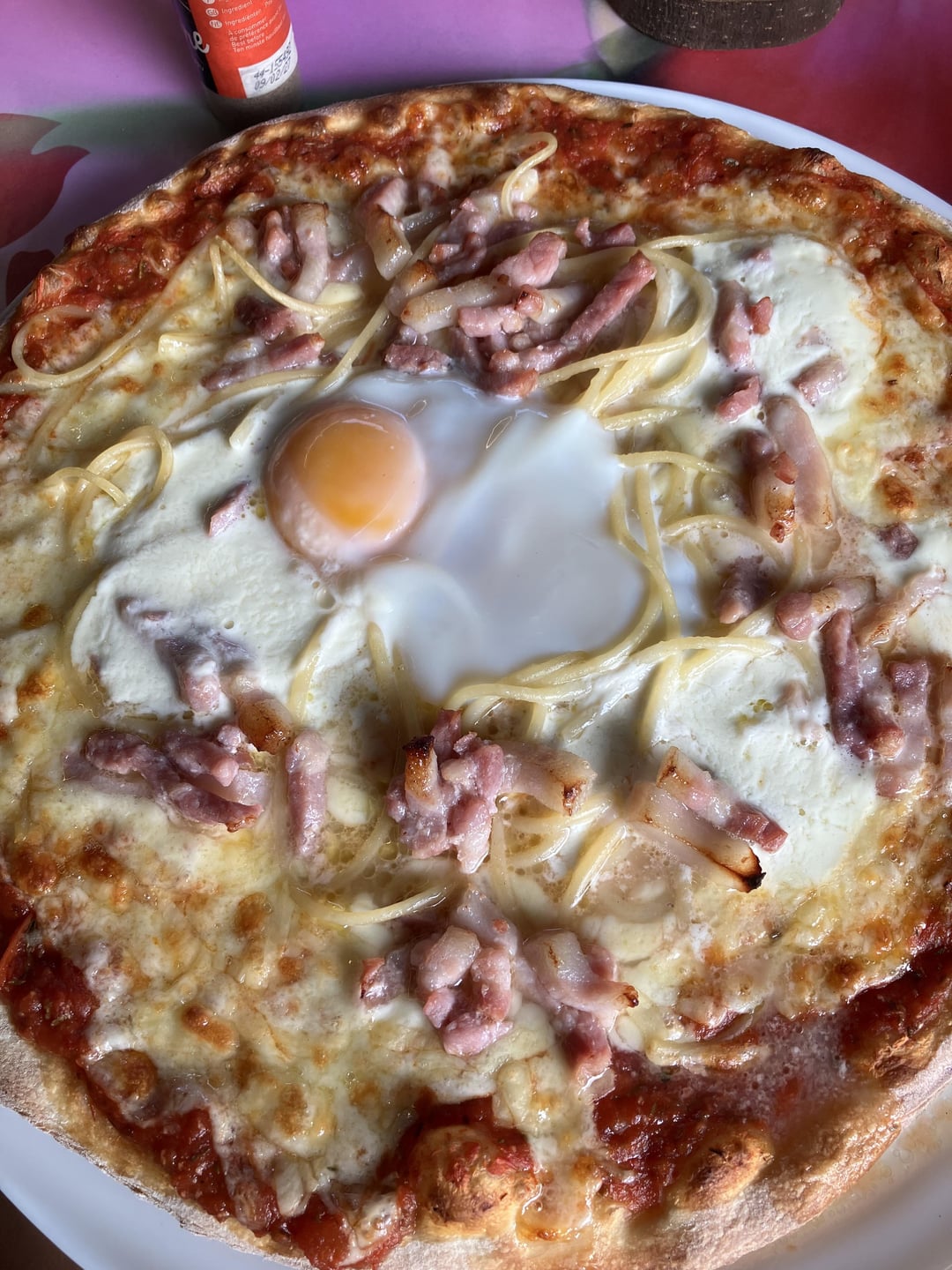 I don’t care about the egg, but spaghetti? On pizza? Guilty.