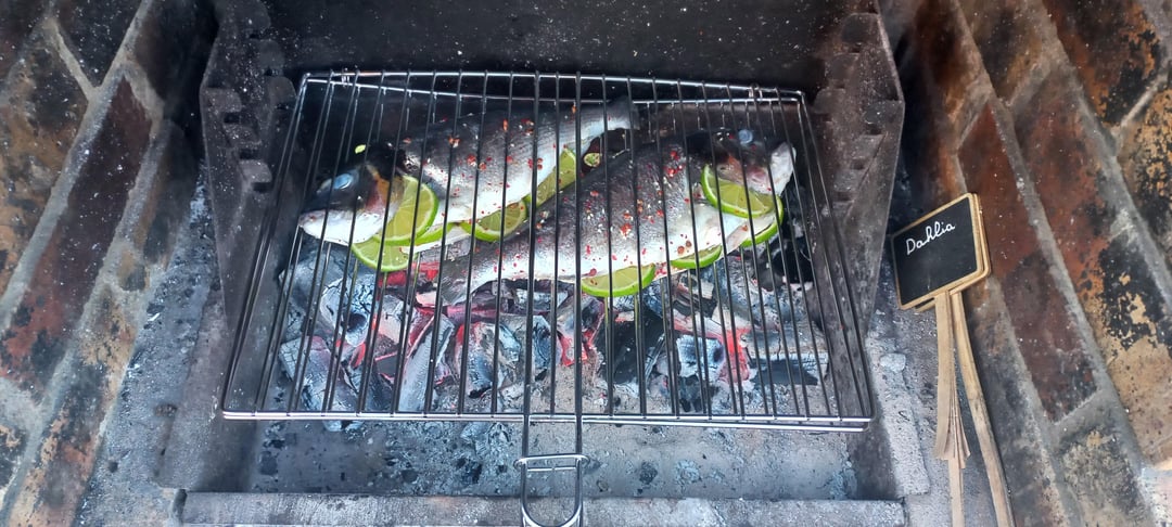 It was great but I learnt the hard way that fish should stay higher on the fire compared to meat :').