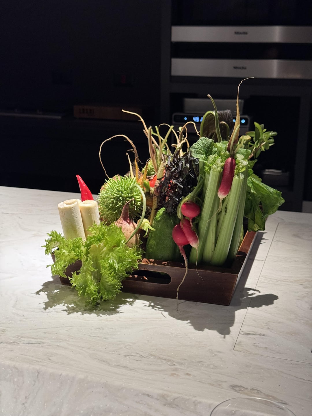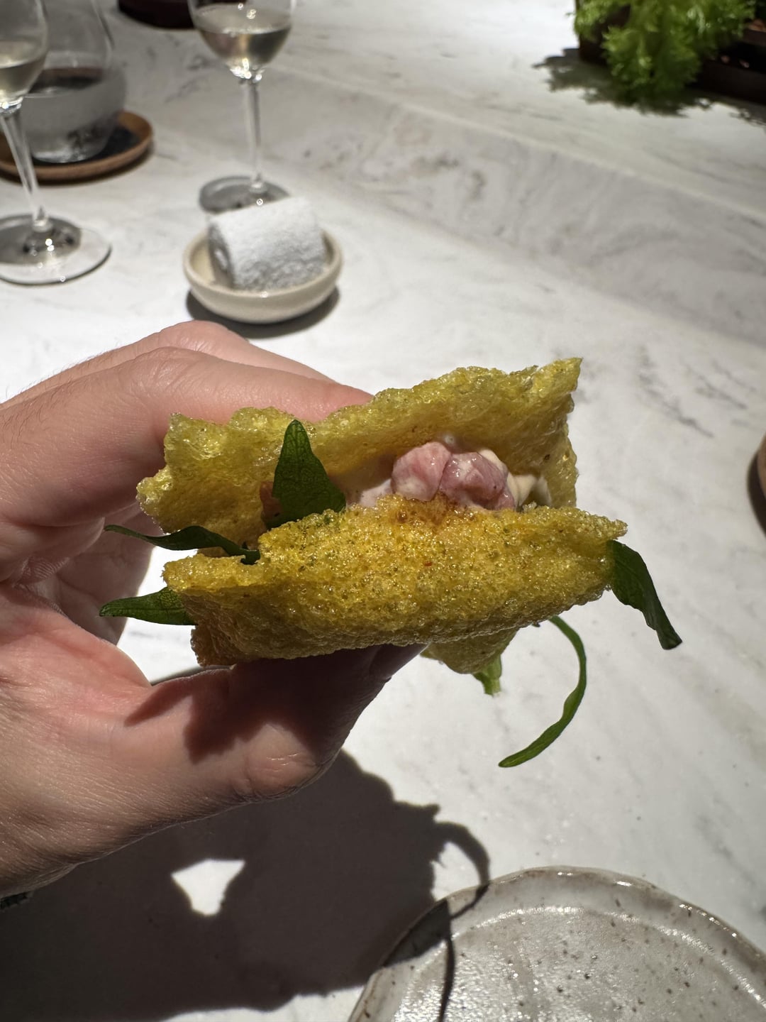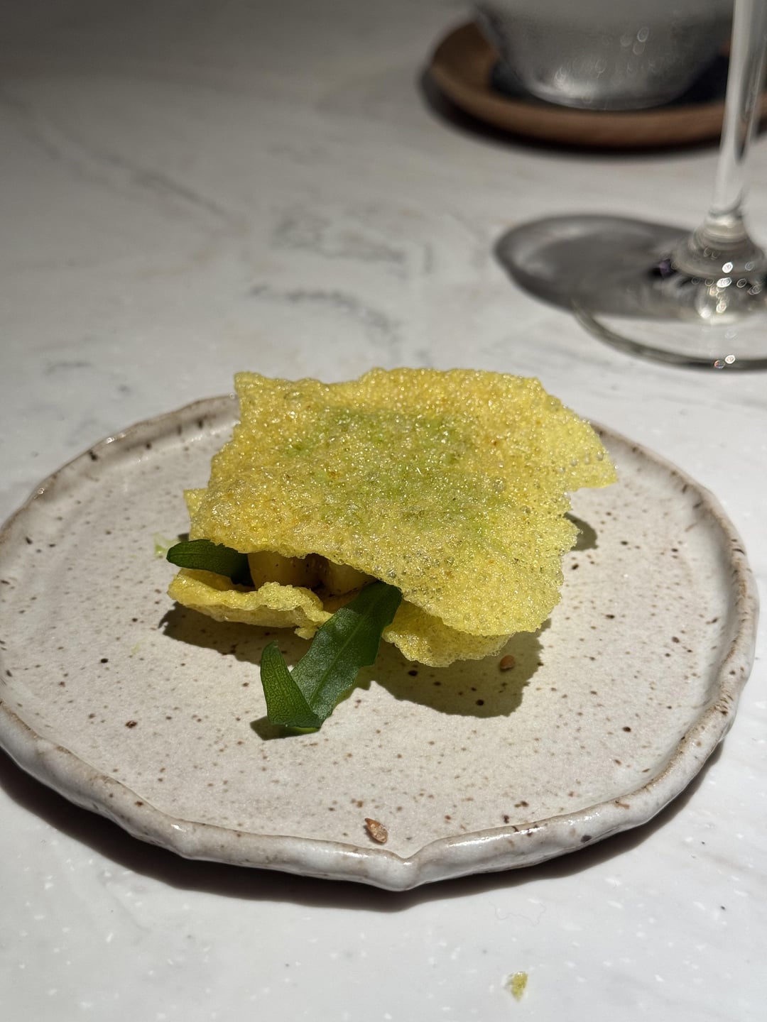 Dinner started with a series of snacks containing different brazilian roots, vegetables and nuts, mostly grown in a local farm owned by the restaurant: mandioca, pecan, string bean, kale. All nine snacks had very clever use of vegetables, and though some of them had meat or fish (the tumeric biscuit with wagyu tartare or the uni chawanmushi), all animal protein was clearly an addition to the very distinc vegetable flavours and fit perfectly in it.