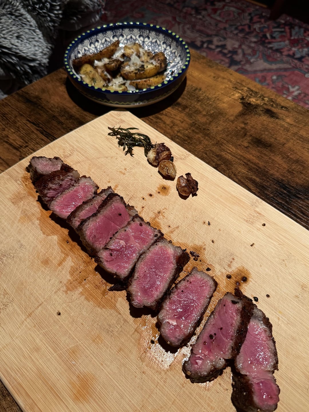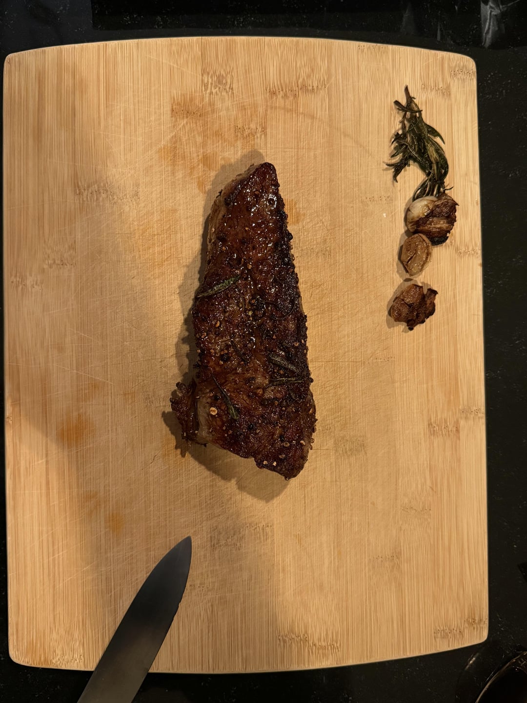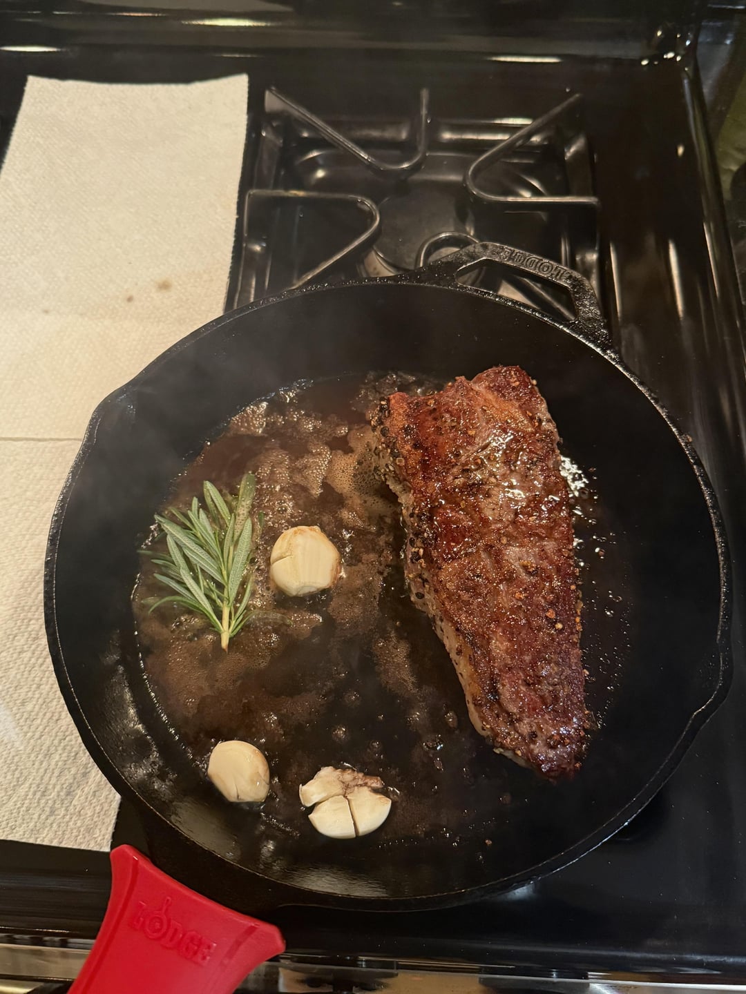 I made one perfect Wagyu NY strip—salt, pepper, cast iron sear, basted with butter, garlic, and rosemary, rested like a saint, then ate it in complete contempt 😌